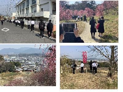 広田梅林では、班に分かれてタブレットを片手にオリエンテーリングを行ったり、教室を離れた数時間を班員とともに「春の香」を楽しむことができました。平日でしたが、満開の梅に誘われて、多くの観光客が訪れていました。ただ、渋滞にはなっておらず、平日にお時間が取れる方は、ぜひ「春を感じ」に行ってください。