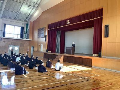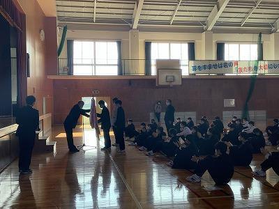 1年生、2年生も大きく成長した令和3年でした。今年もコロナとつきあうこととなった1年ですが、その中で「自分たちでできること」をしっかりとやり遂げることができました。胸を張って最上級生そして先輩として新1年生44名を迎えてください。春休みは、しっかり助走し令和4年度、スタートしてください。さて、集会で伝えましたが令和4年度から朝のスタートの時間が変わる予定です。朝読書が8:20~始まります。今、8:25ぎりぎりに登校している人は、春休みから生活スタイルを少しずつ変えていきましょうね。