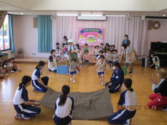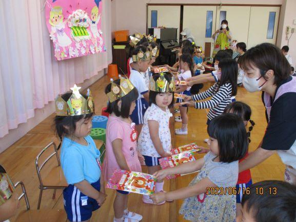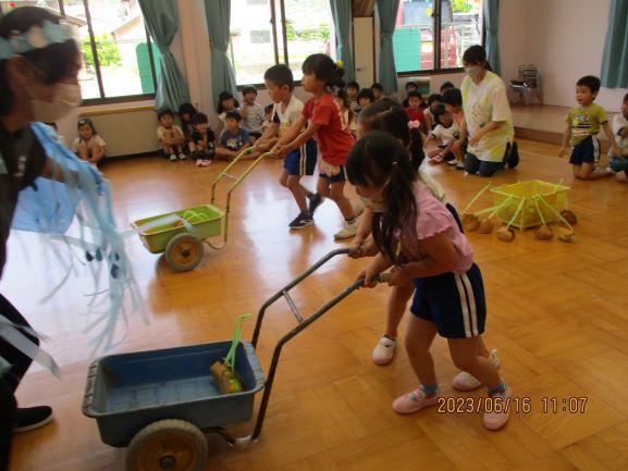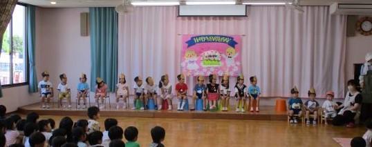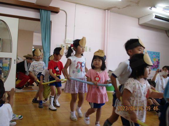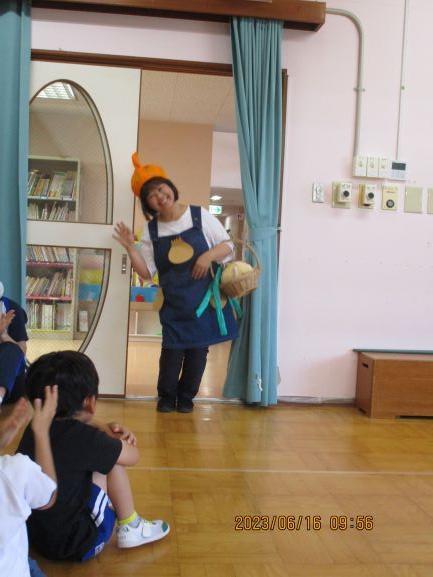 今日は6月のお誕生会でした。誕生児のお友達は、玉ねぎに変身して登場♪