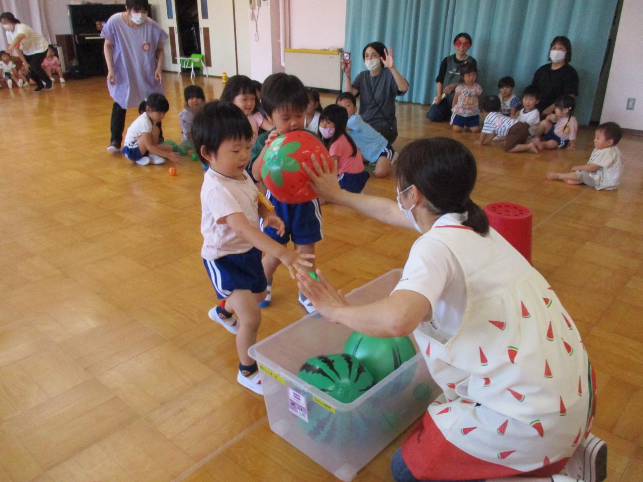 1歳児のお友達はすいか運びゲーム♪