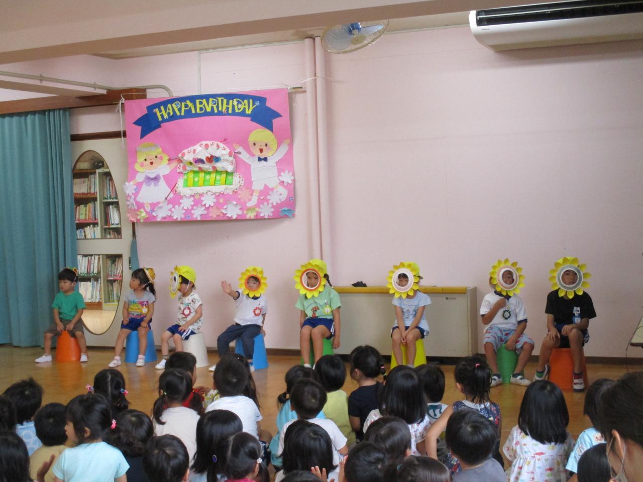 8月生まれのお友達は、ひまわりとひまわり帽子をかぶって登場!