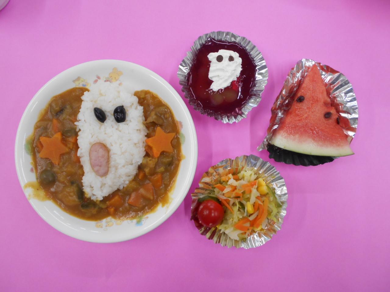 今日の給食は「お化けランチ👻」 美味しいお化けランチを食べて、大満足の子ども達でした🥰