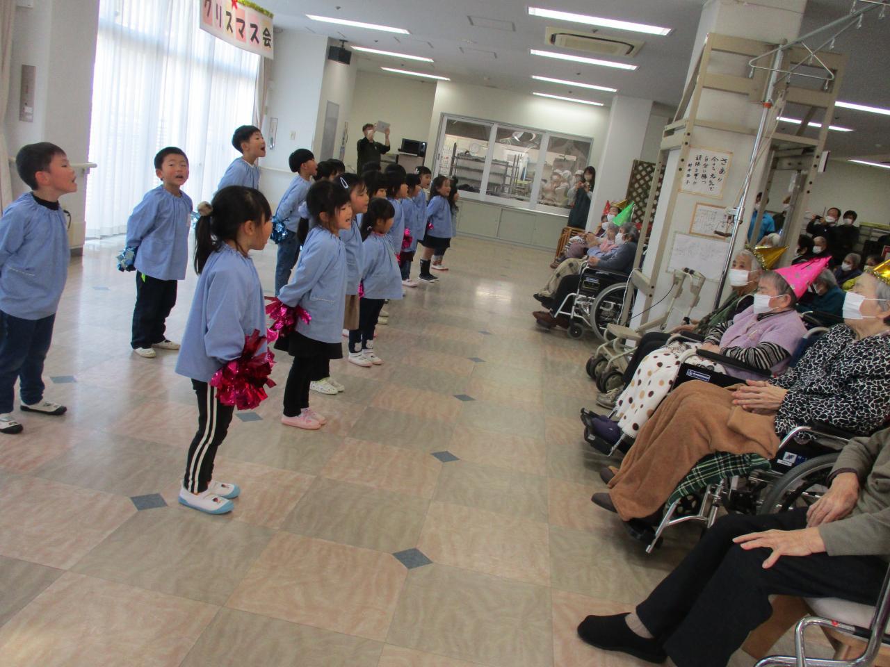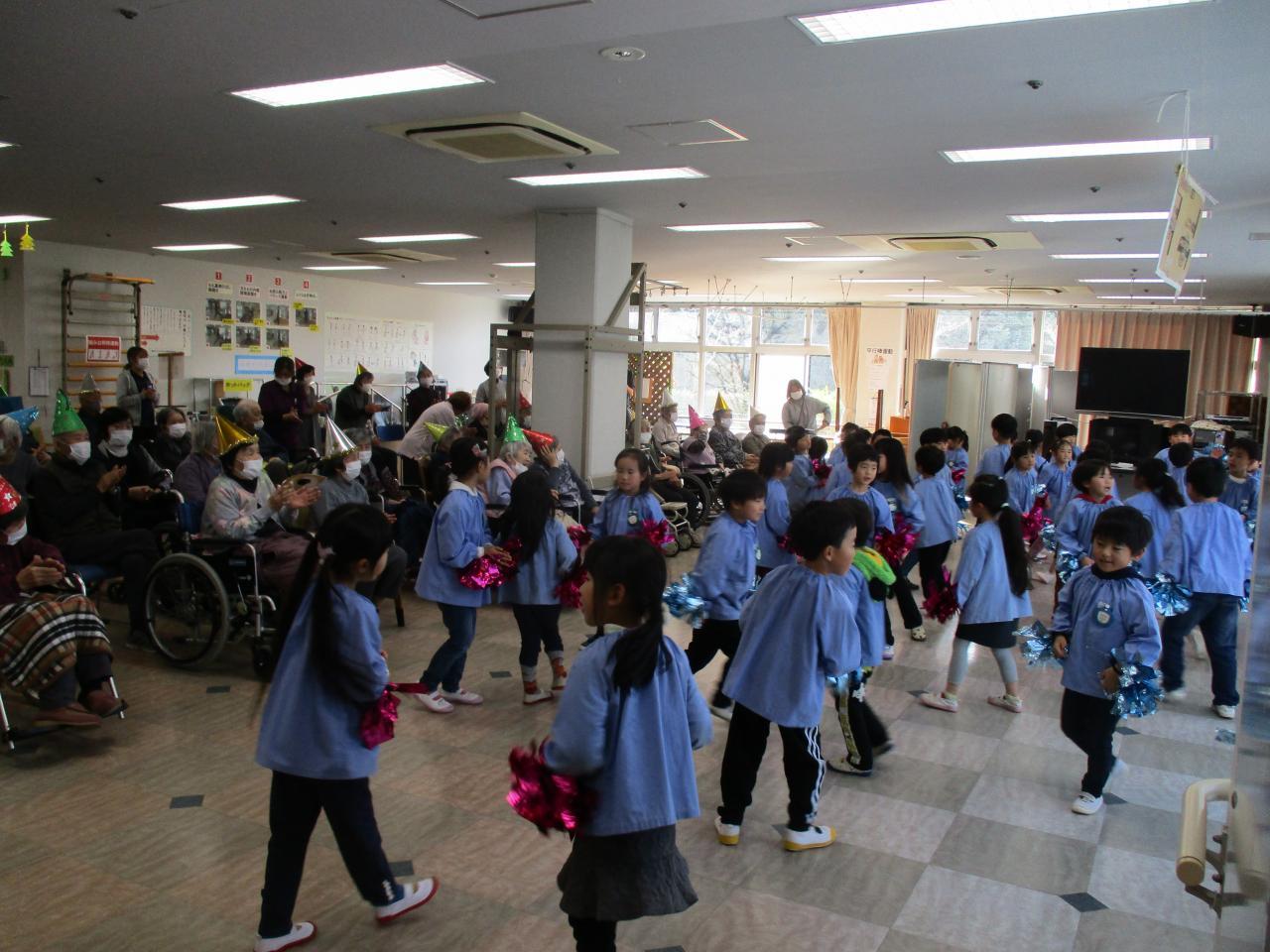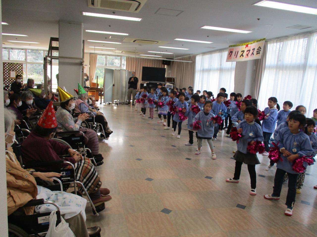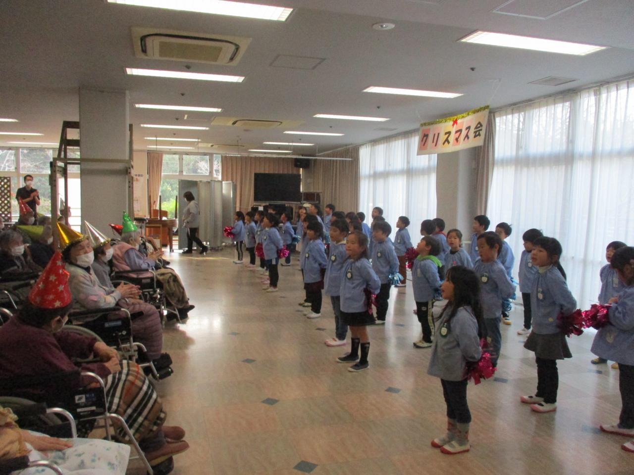 ぞう組・らいおん組は緑風館のクリスマス会に行ってきました。ダンスや歌を披露し、緑風館のおじいちゃんおばあちゃんからたくさんの拍手をいただきました。おじいちゃんおばあちゃんから「可愛いなあ。」と言ってもらい、子ども達もニコニコでした。元気をいっぱい伝えることができました。