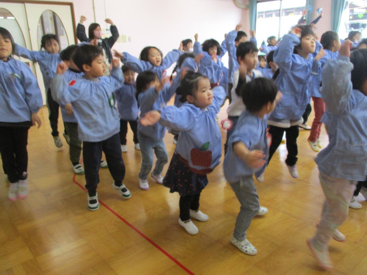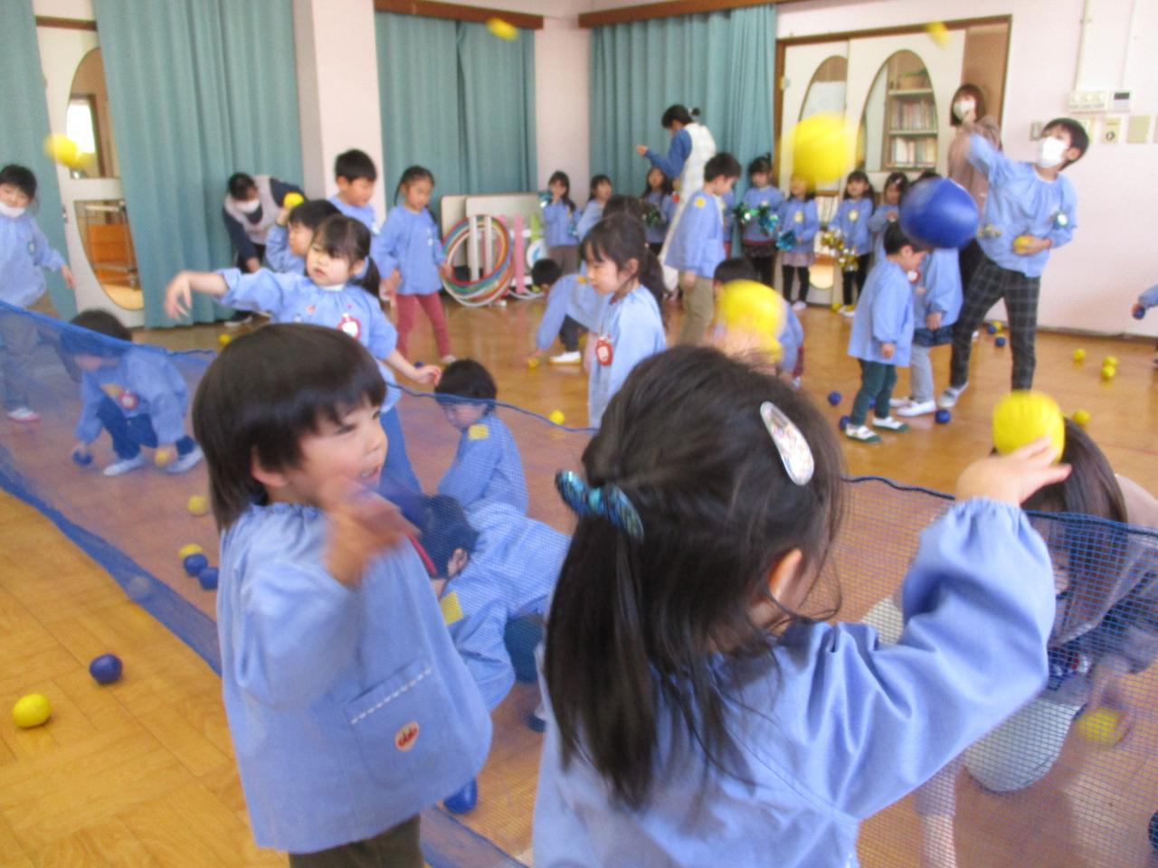体操やフープ取り、追い出し玉入れやスキップ&ぴょんぴょんリレーを行い、身体をたくさん動かして、楽しい交流となりました。