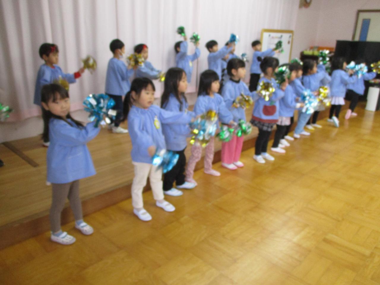 キラキラポンポンを持ったきりん組の友だちも応援に来てくれましたよ♡
