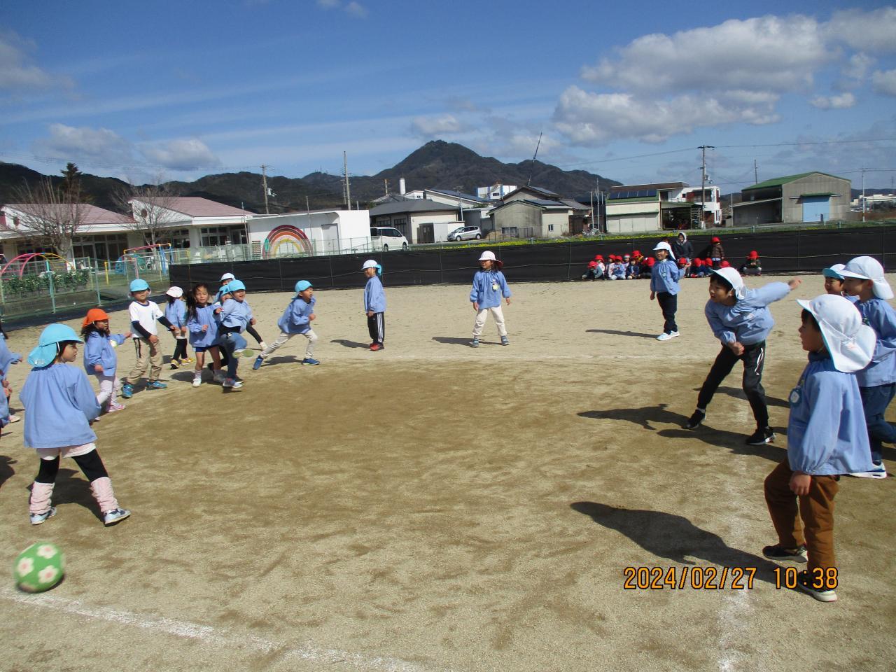 今日はきりんぐみと年長さんのドッヂボール大会でした。