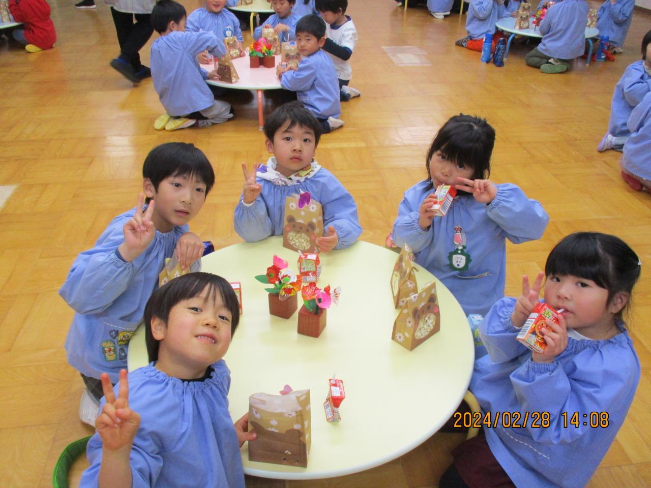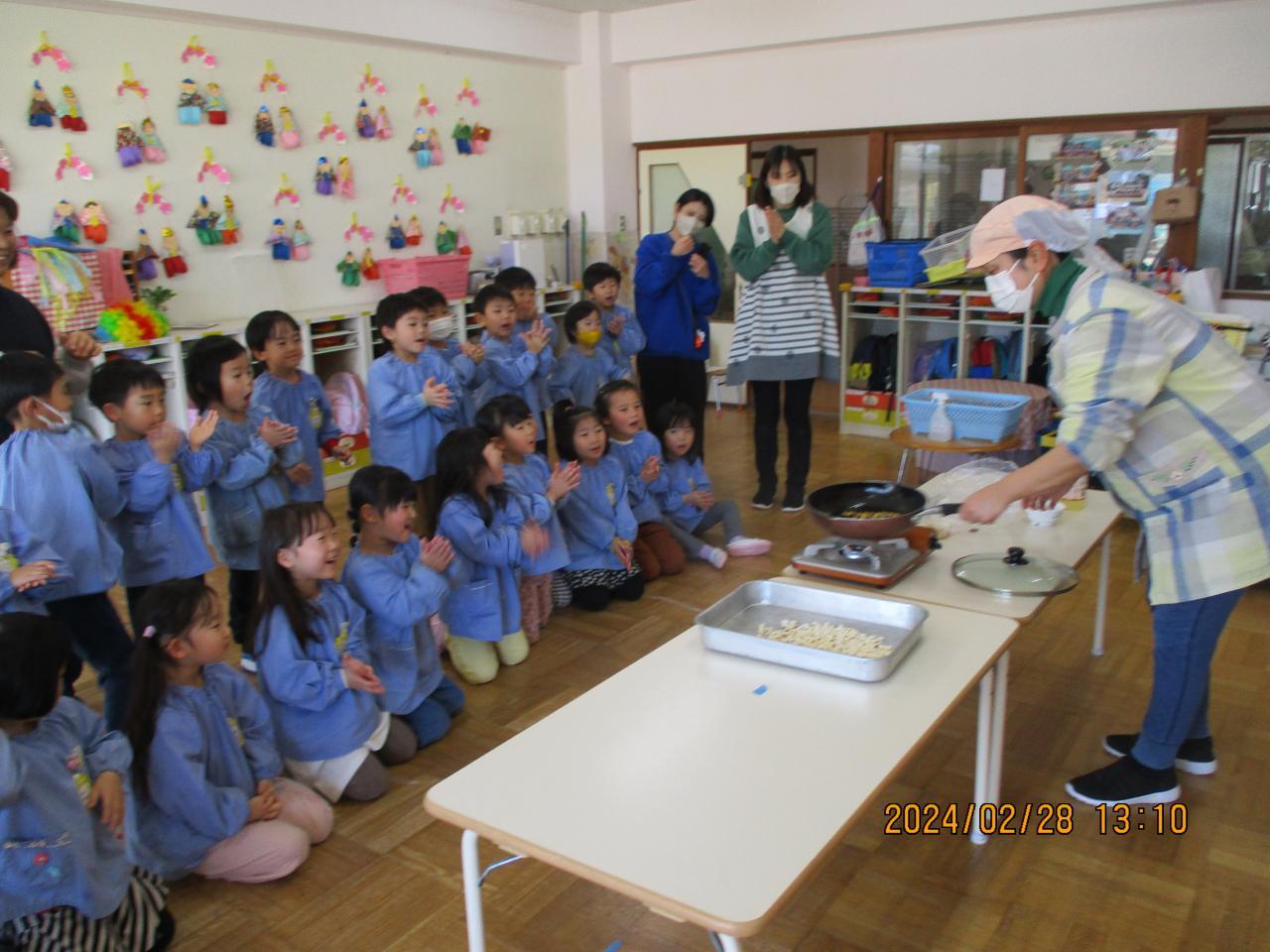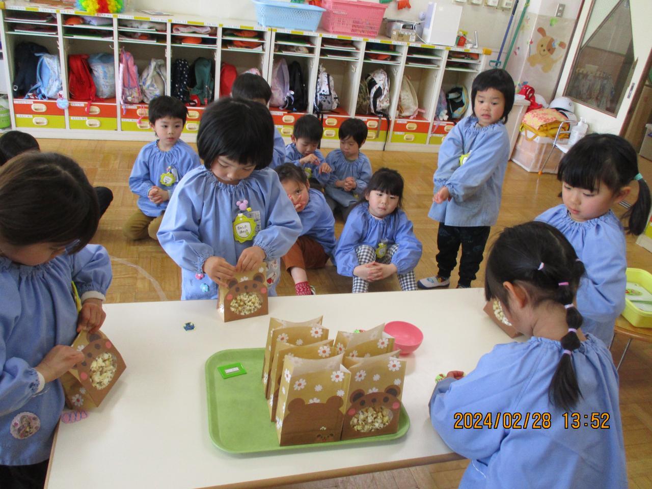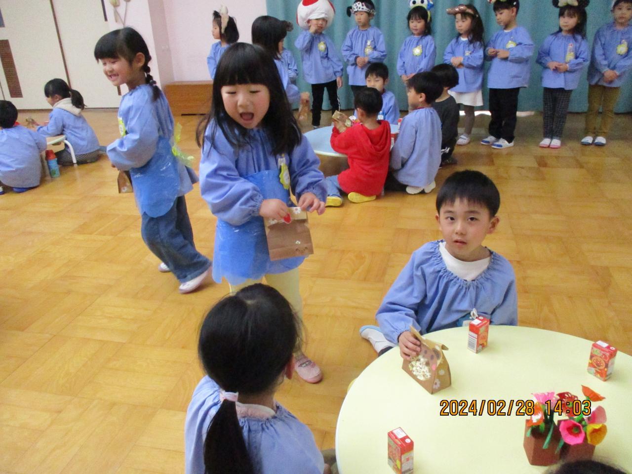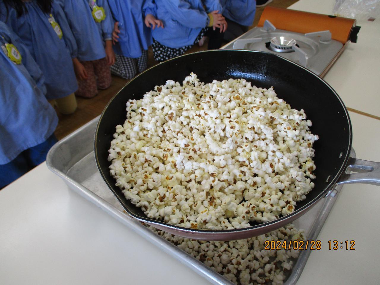 きりんぐみが夏に収穫したポップコーンを使ったポップコーンパーティーでした!