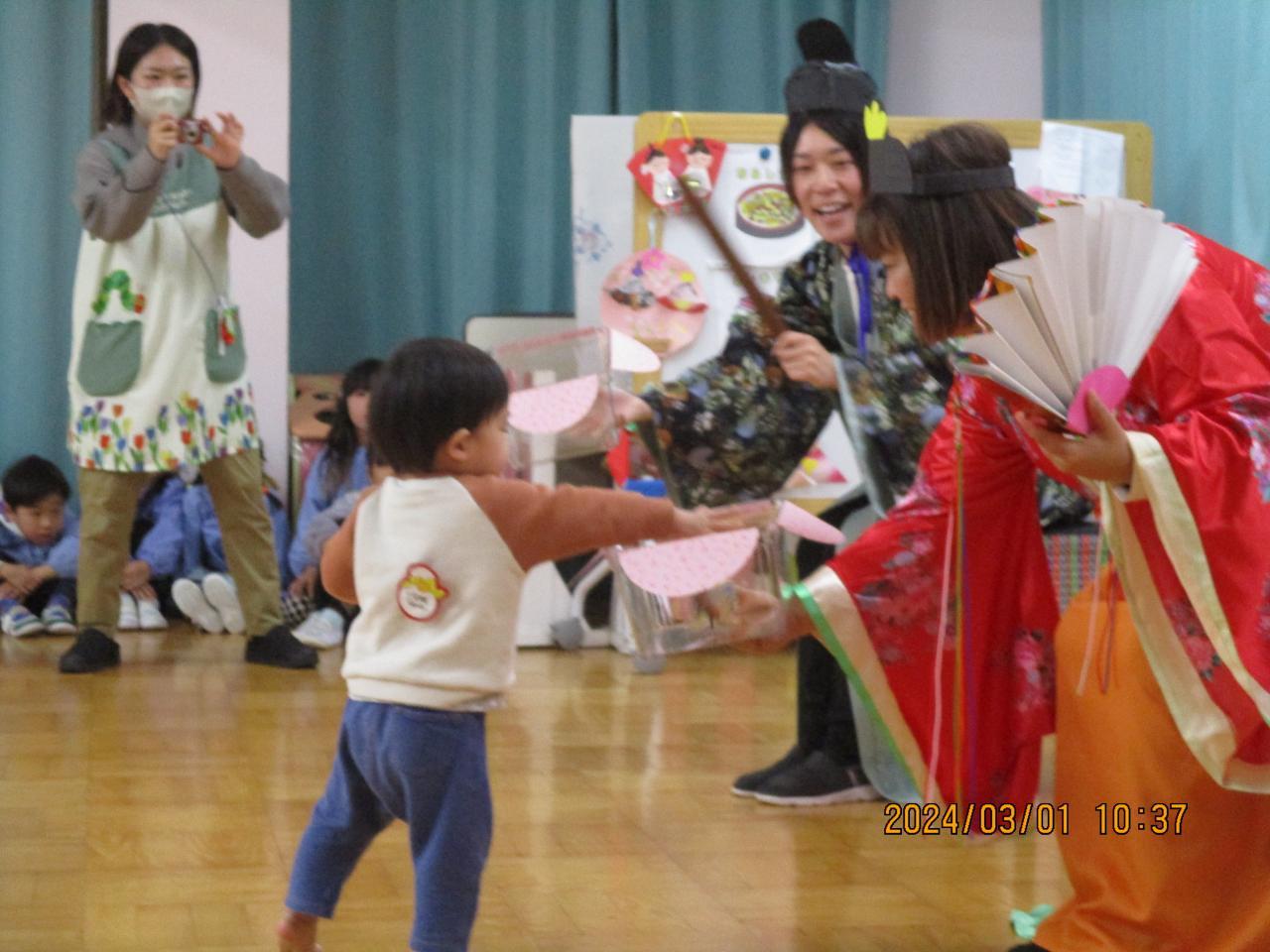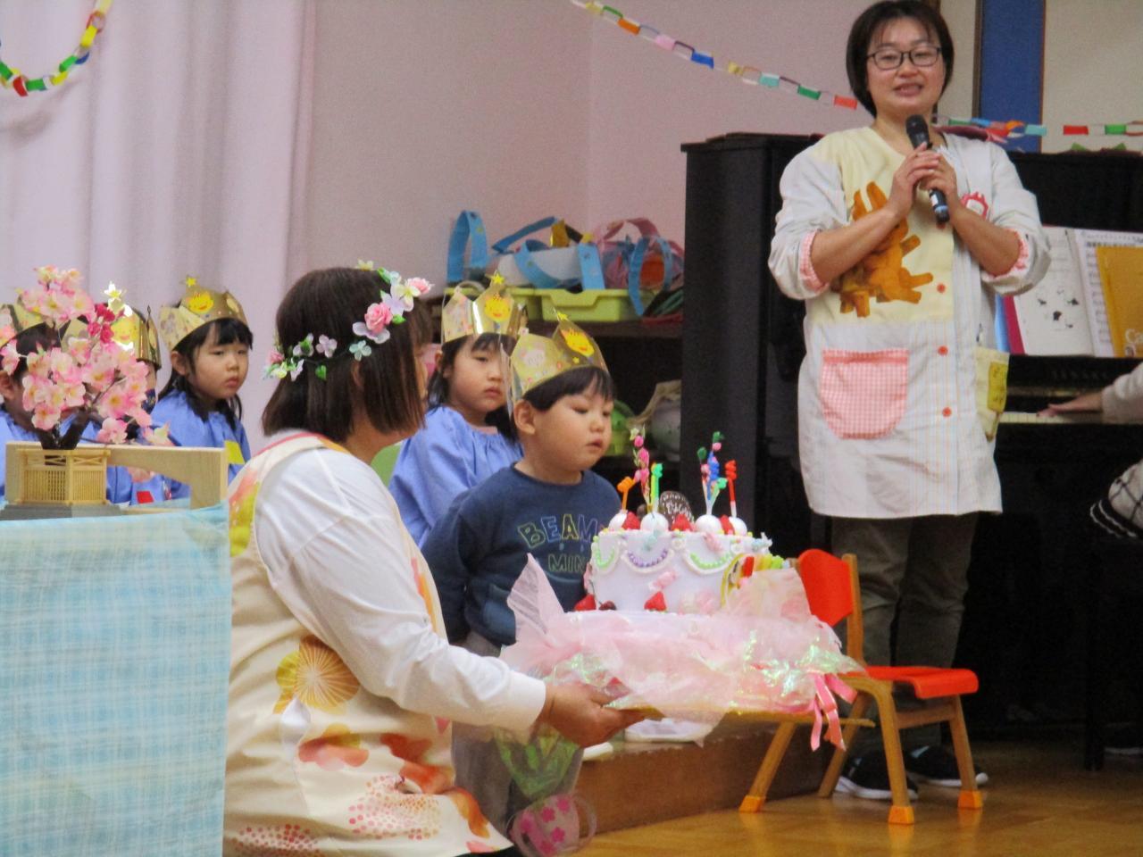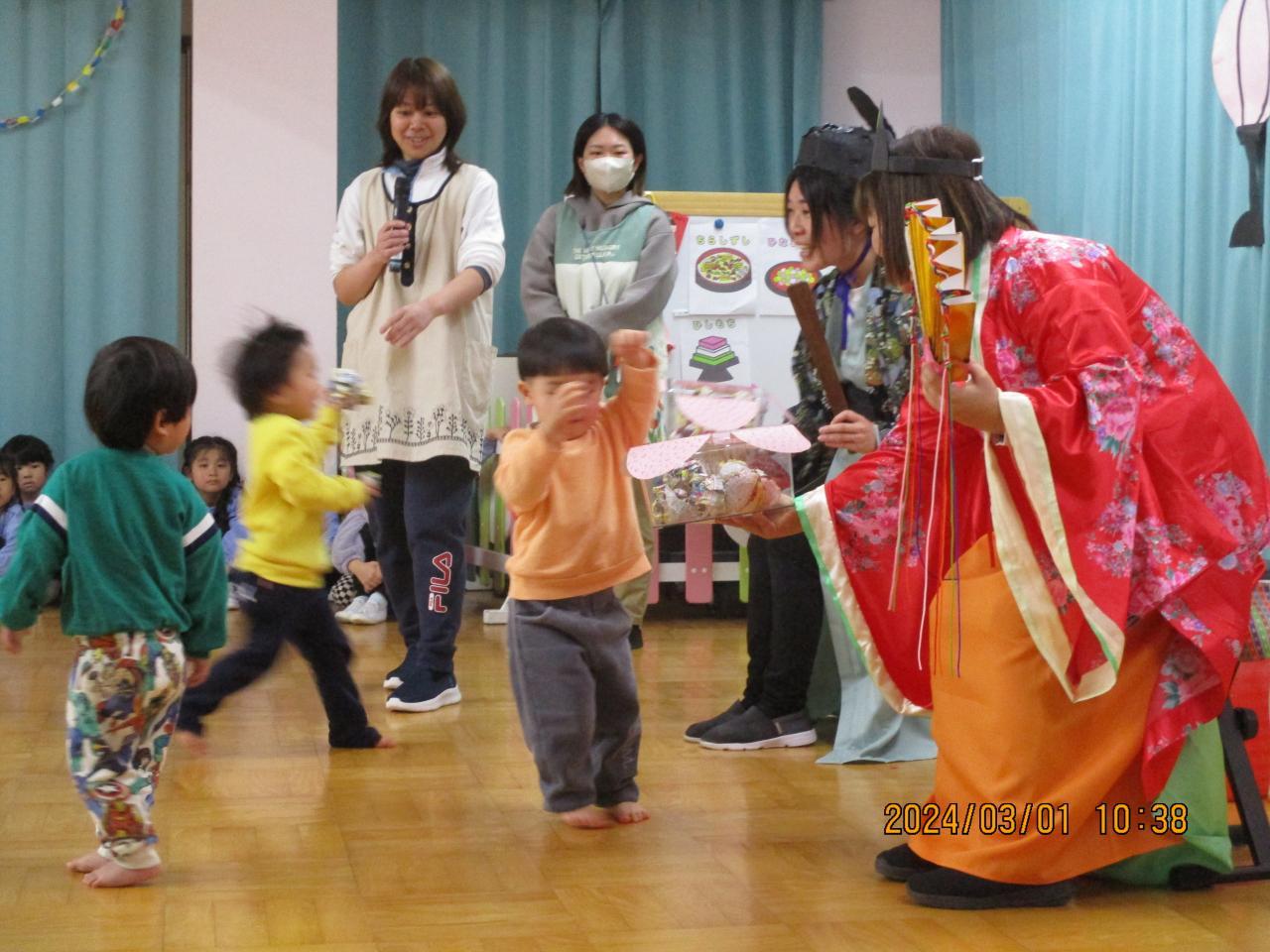 3月生まれの誕生会、ひなまつりをお祝いしていきました。