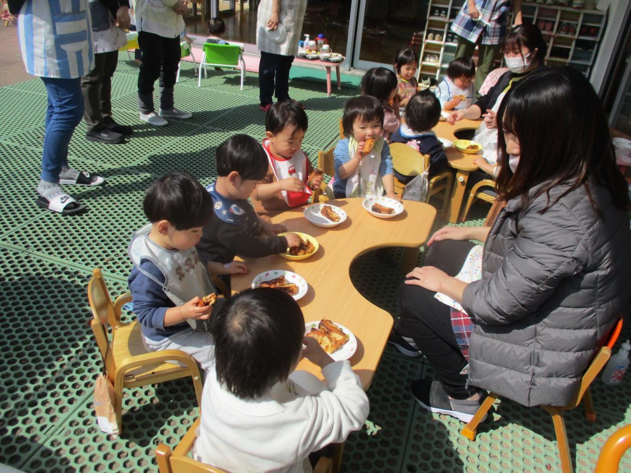 お天気にも恵まれて、みんなでお外で作って食べました!