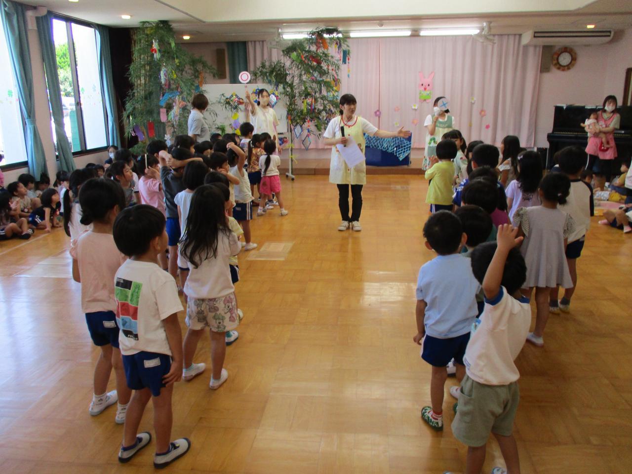七夕集会では、各クラスの笹飾りの紹介や、七夕の話、七夕〇✖クイズなどして楽しみました。今年の7月7日は日曜日です。天の川が夜空に見えるといいですね!みんなの願い事がかなうといいですね!