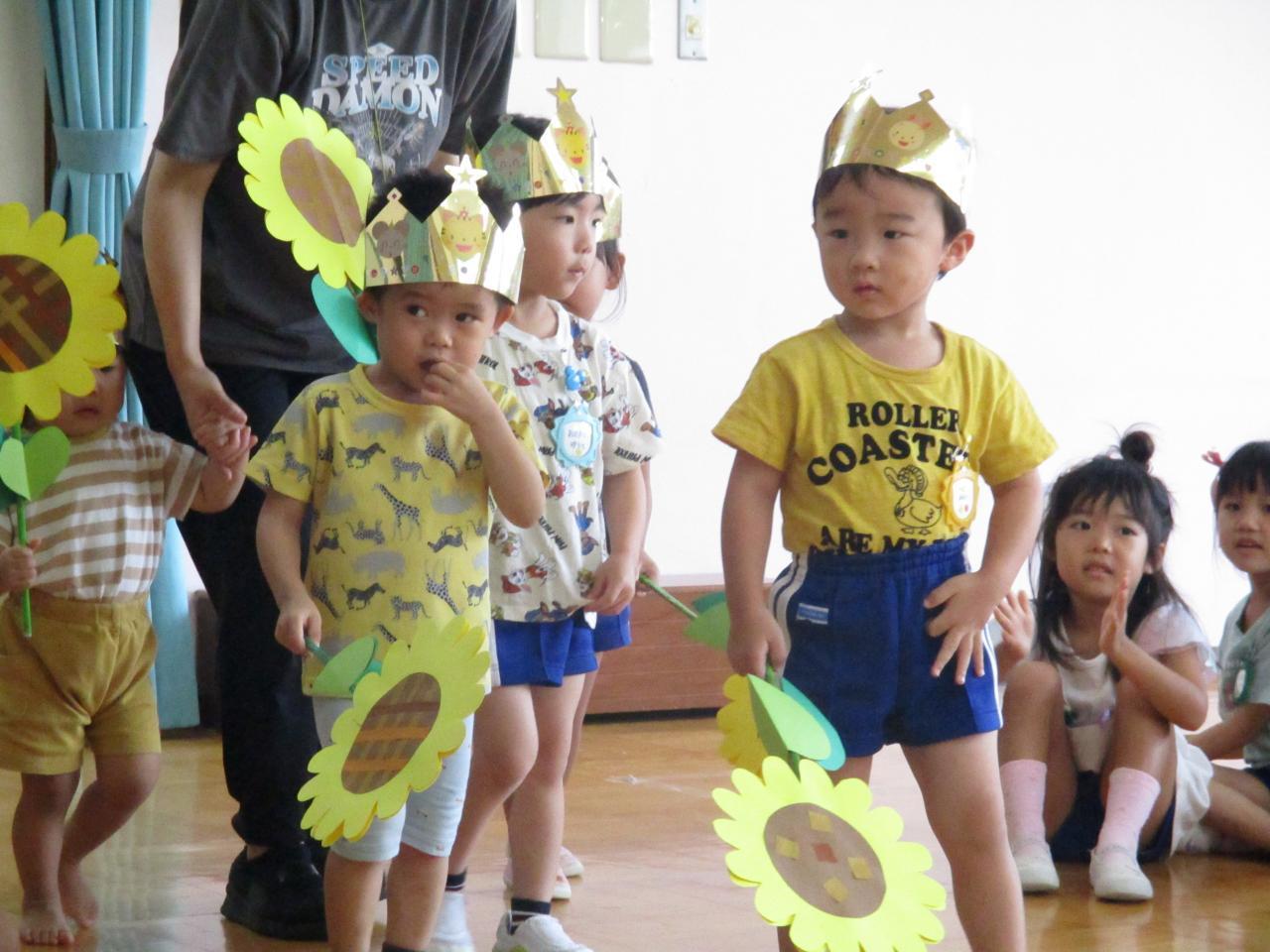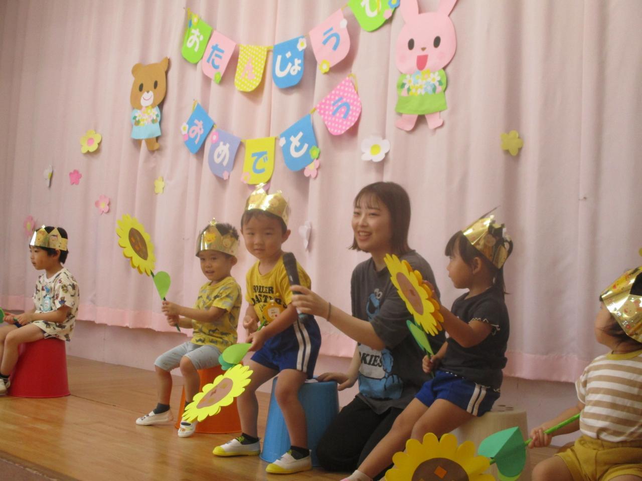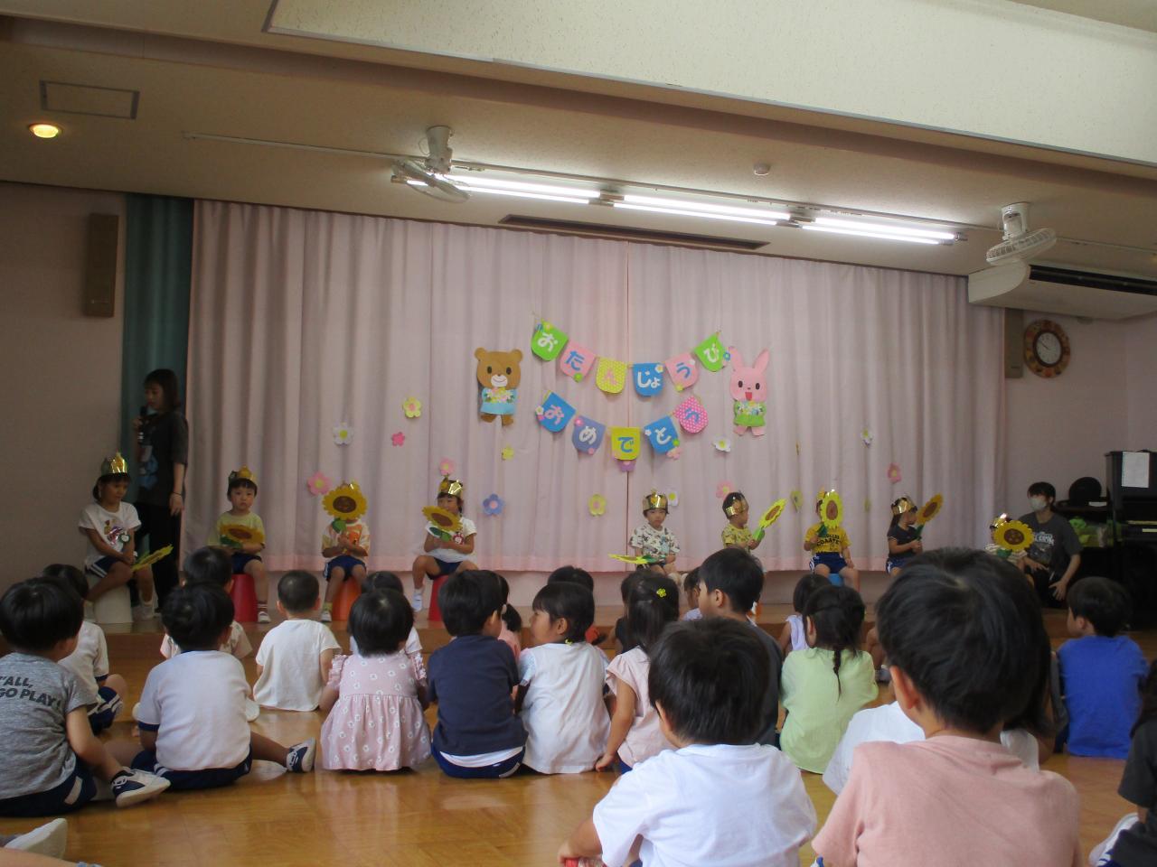 今月は手に大きなひまわりを持って誕生児さんが入場🌻