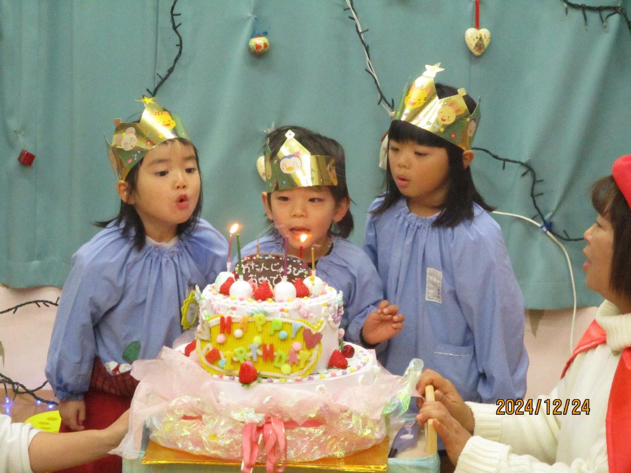ケーキにろうそく、友だちと一緒に「ふ~!!」
