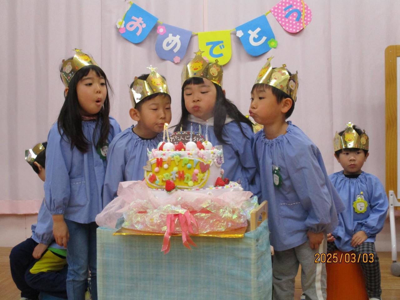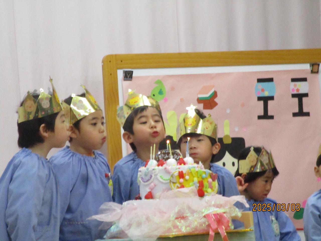 誕生日ケーキ🎂ろうそくに『フ~!!』上手にできました