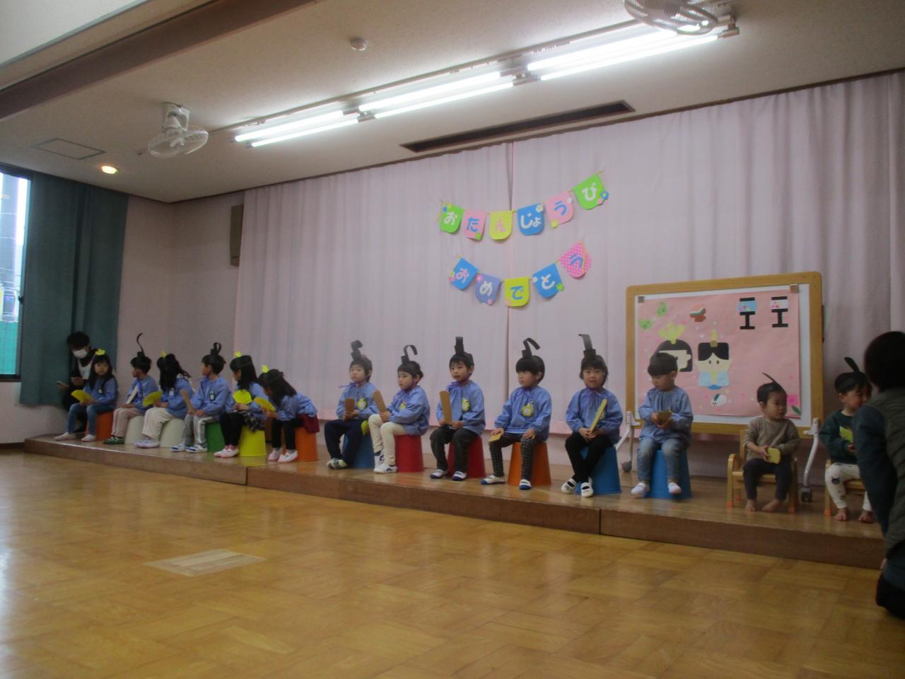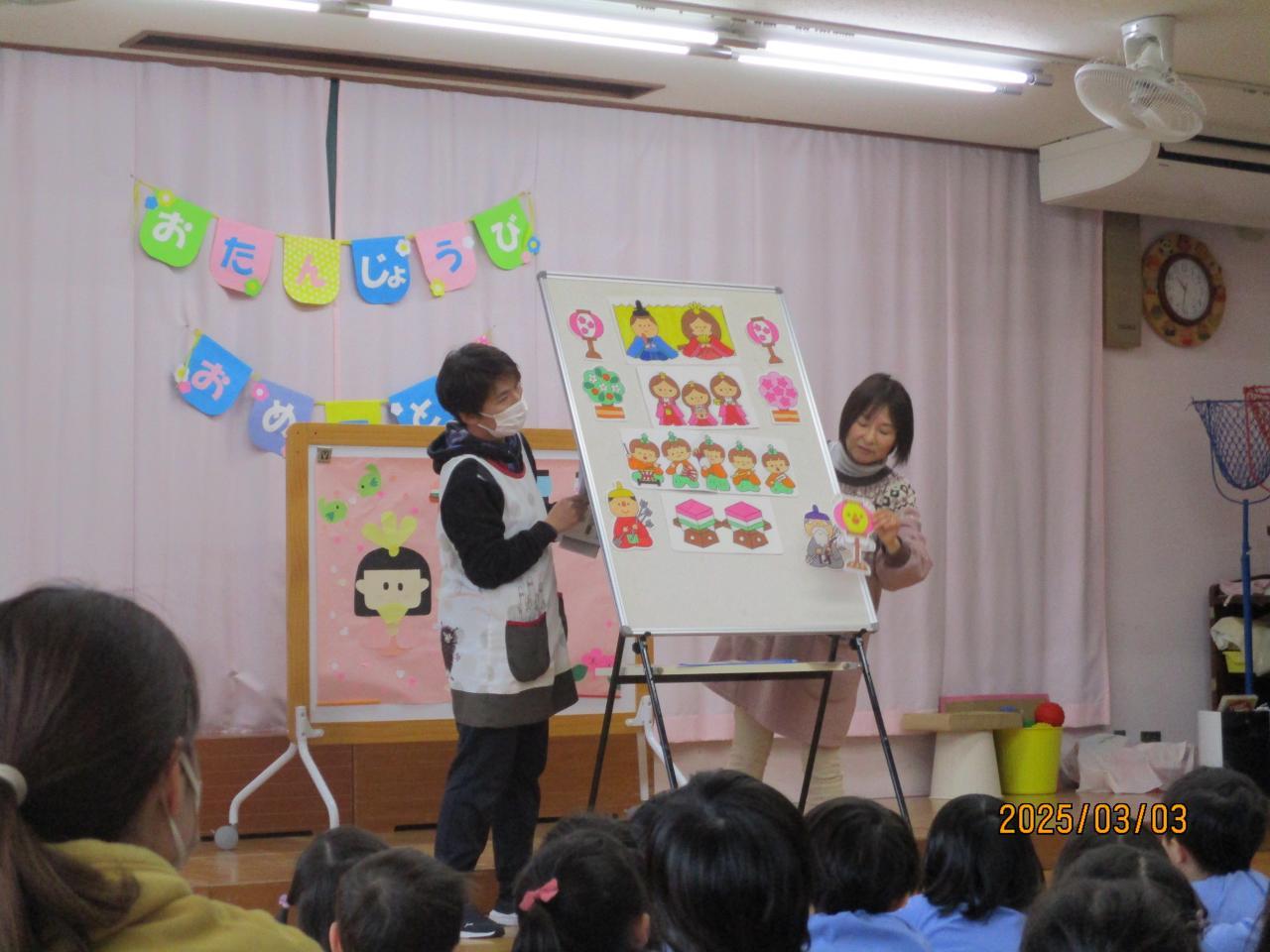 ひな祭り会ではパネルシアターでひな祭りの由来についてのお話がありました☆