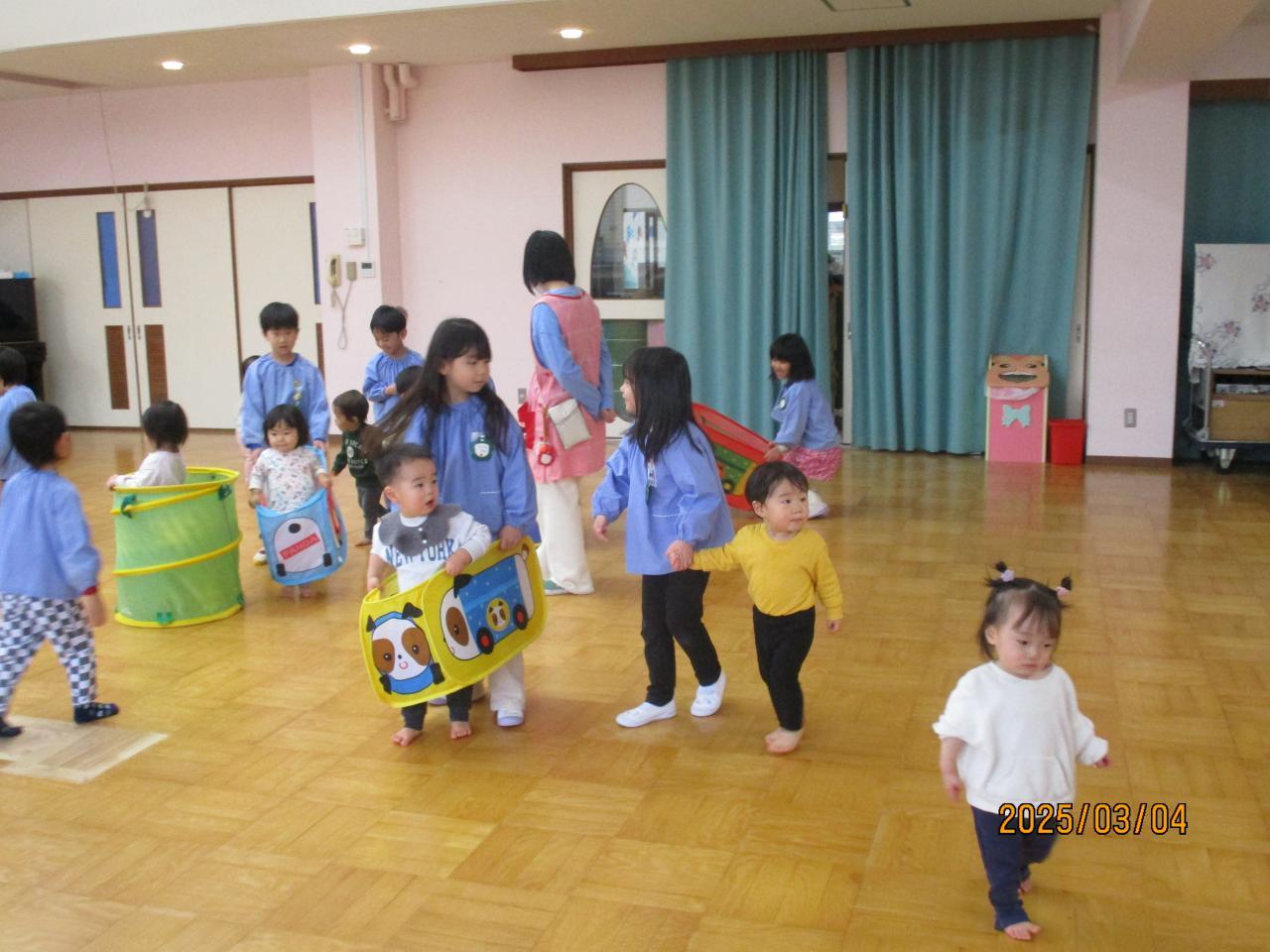 年長児さんと未満児さんとの交流の日でした。