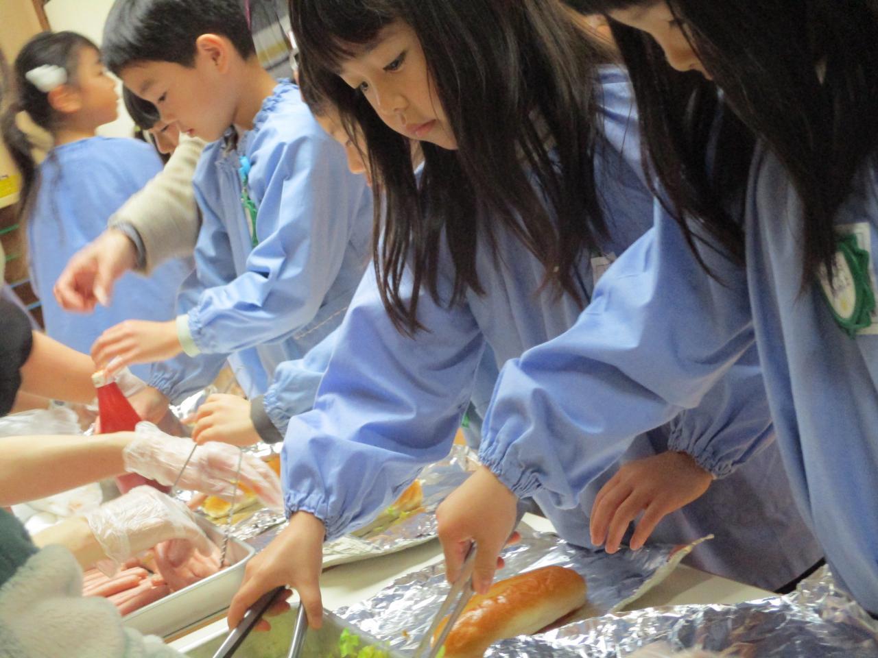 室内でホットドック作り、題して“セルフドック”に取り組みました。