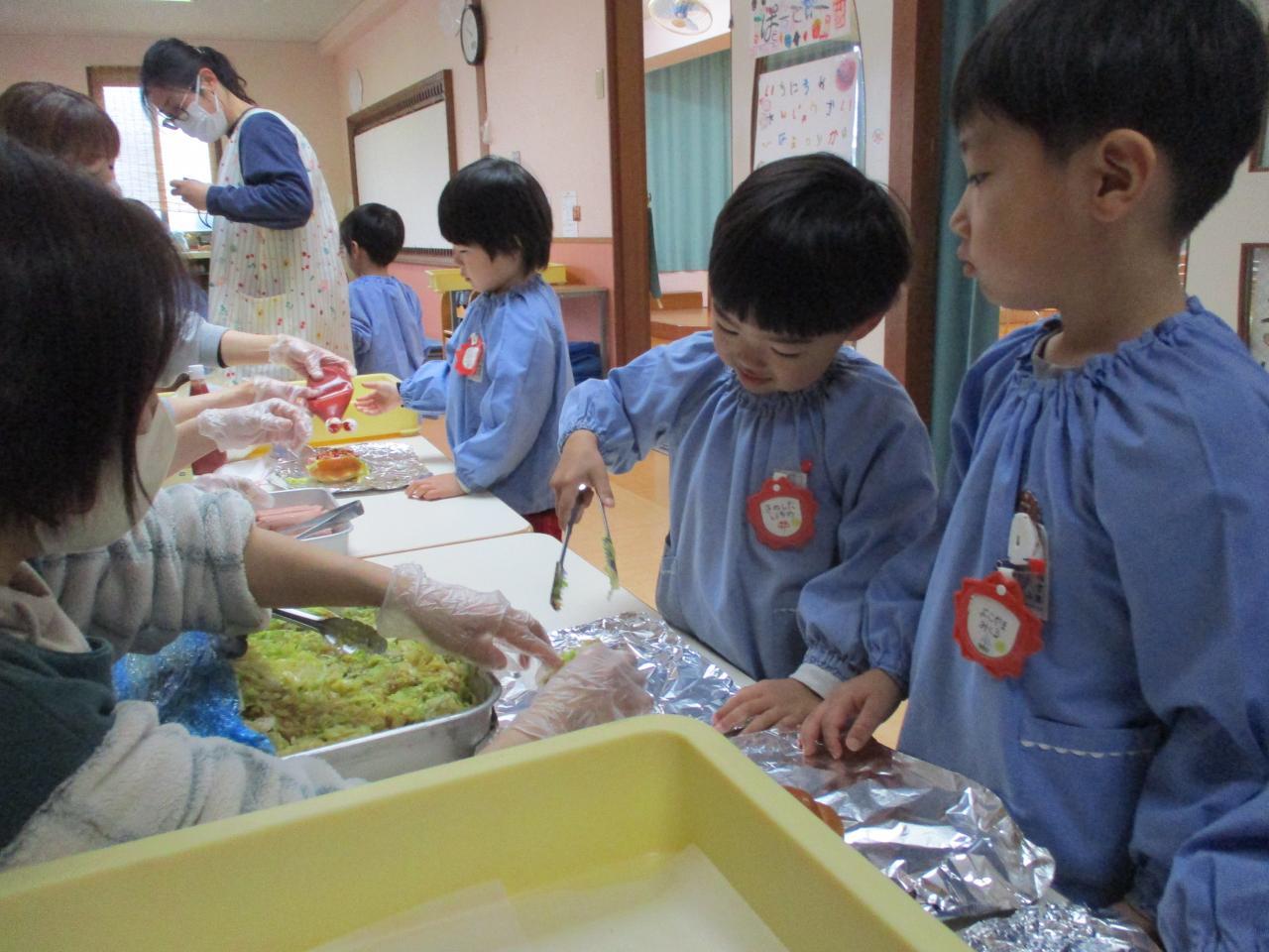 かんせ~い!!美味しそう💛おかずの先生に焼いてもらおうね☆