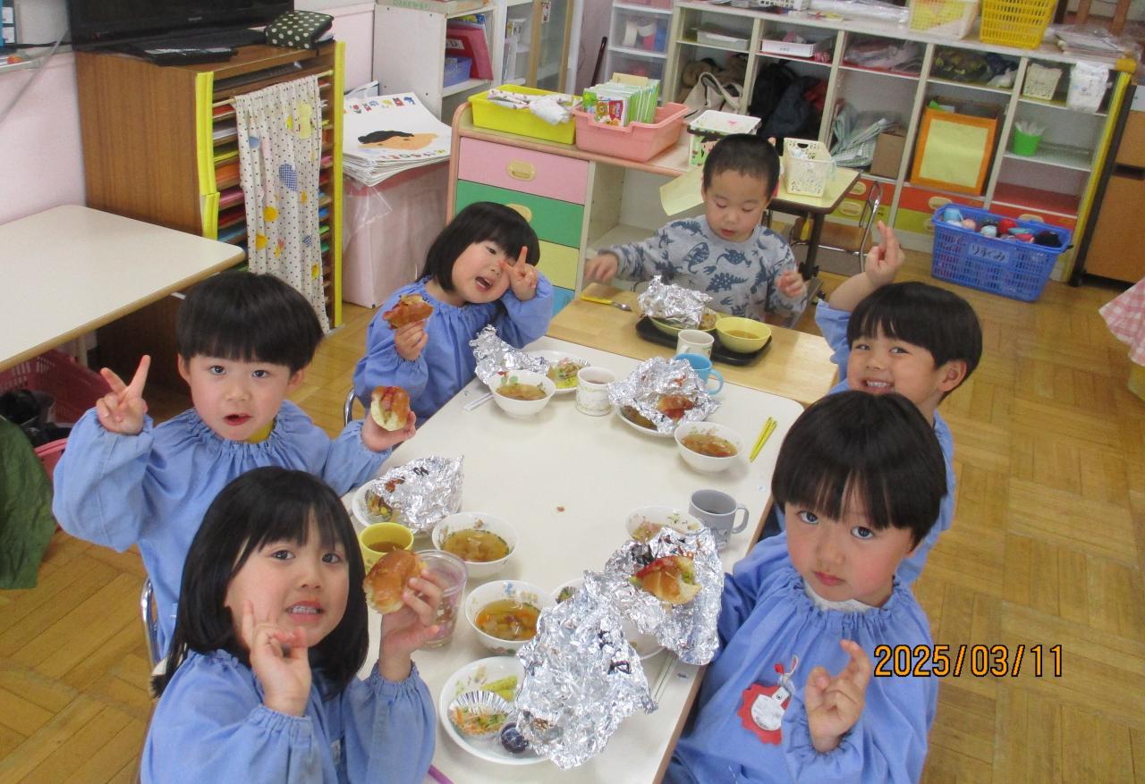 0、1、2歳児の友だちはおかずの先生が作ってくれたよ。