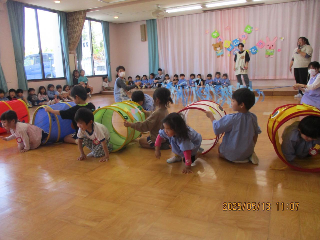 歳児別にこいのぼりをテーマにしたゲームで体を動かして遊びました☆彡