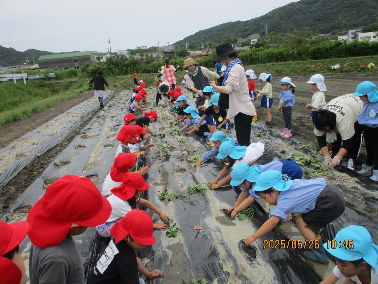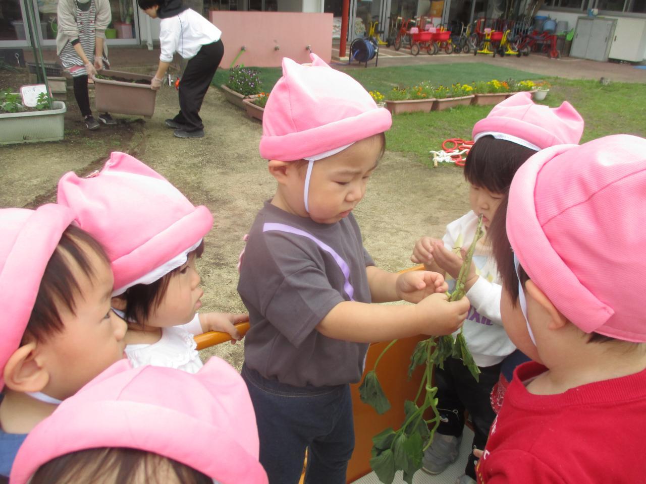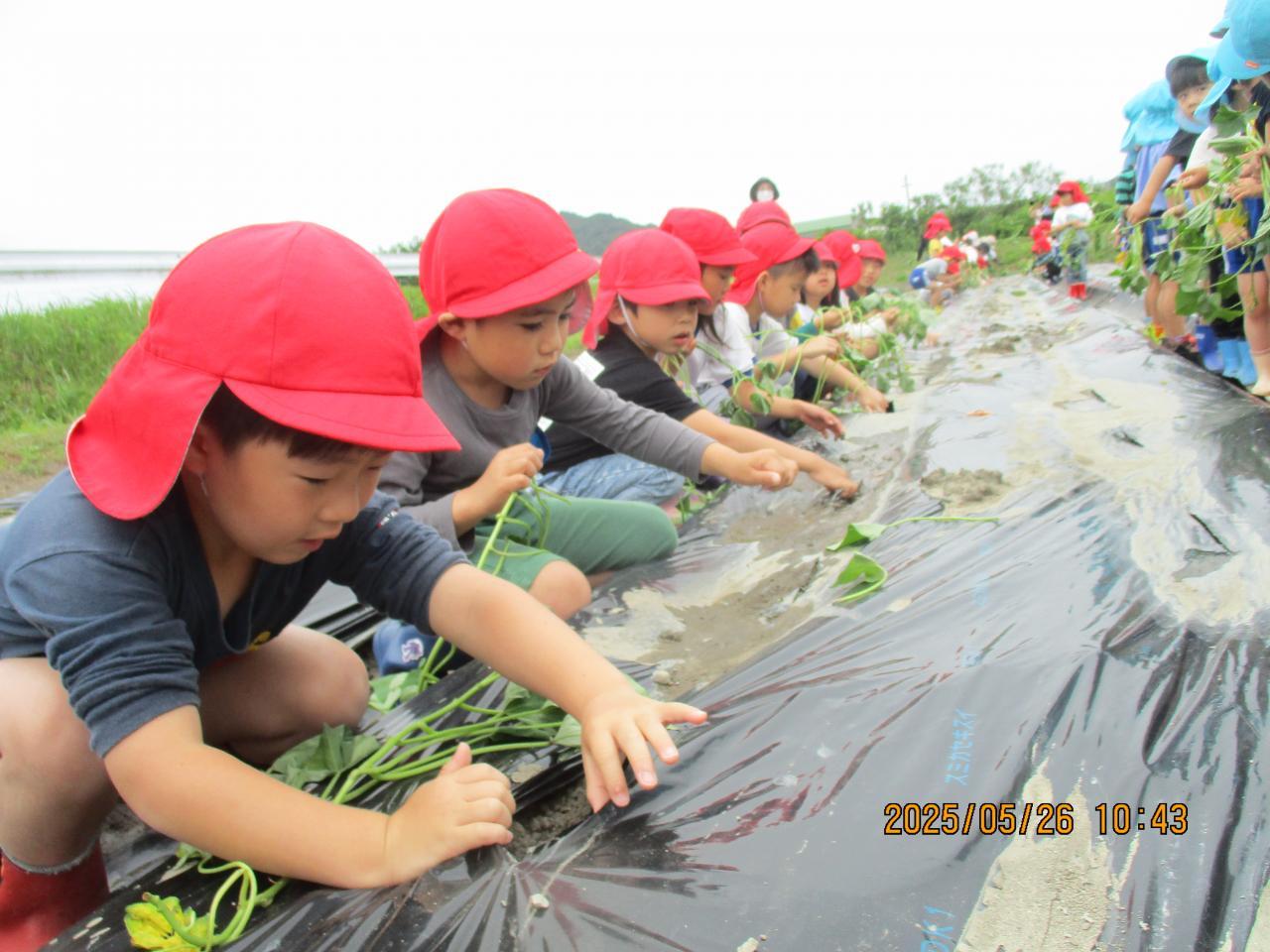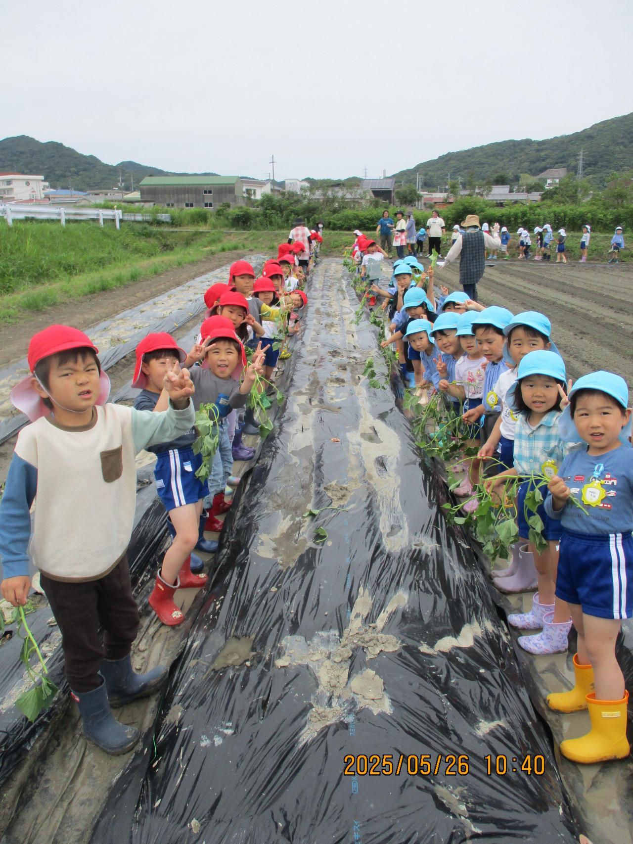 今日は、みんなの楽しみにしていたさつま芋のつるさしに4歳、5歳のお友達が行ってきました。