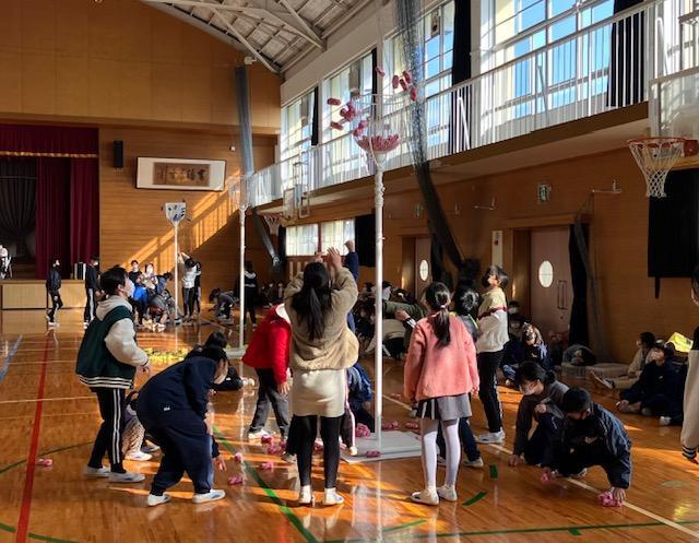 ◆11月下旬から練習に取り組んできた玉入れ「アジャタ」。兵庫県がすすめる「ひょうごっ子ドリームプロジェクト “みんなで一致団結!目指せ、ひょうごっ子記録!”」の一環として、12月16日(金)、児童会の主催により「しづきっ子チャレンジ なかよし班対抗アジャタ大会」を開催しました。