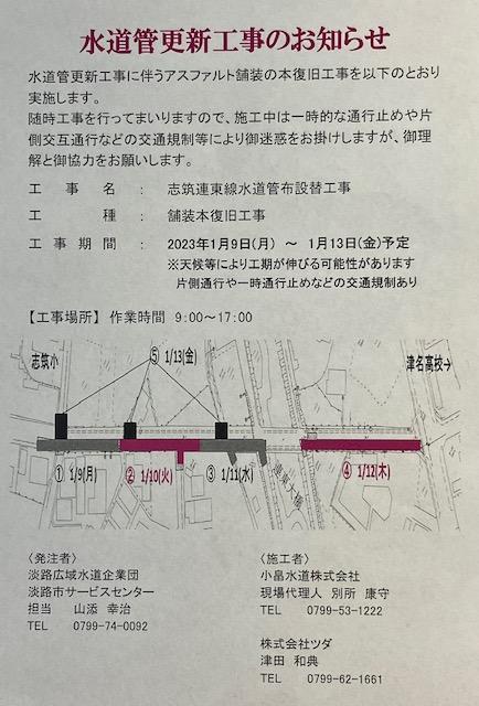 ※志筑連東線 水道管更新工事が仕上げの工事(アスファルト舗装の本復旧工事)に入ります。