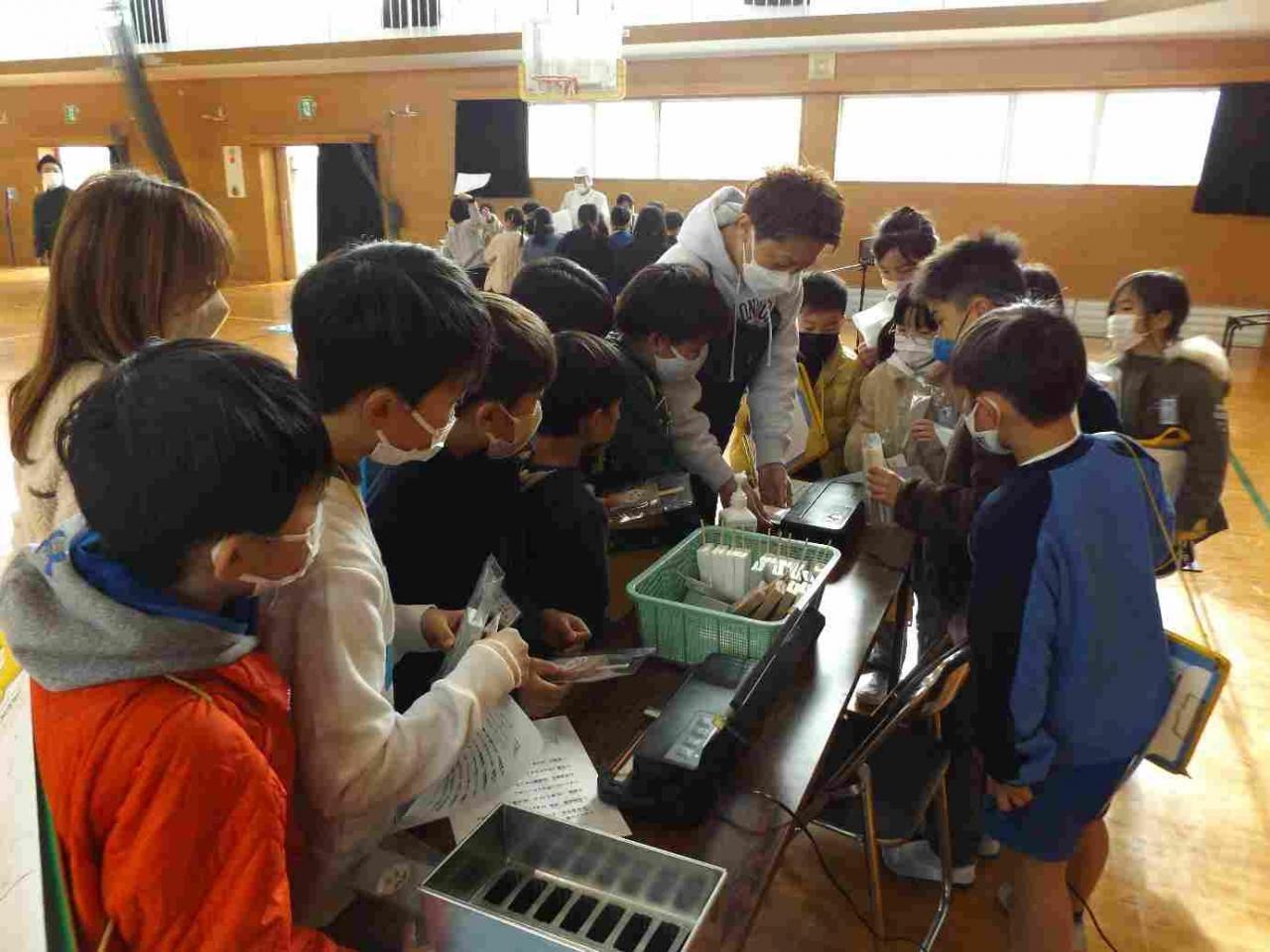 ◆2月2日(木)、3年生の体験学習「しづきッザニア」。たくさんの事業所のブースが体育館とその周辺に並びました。