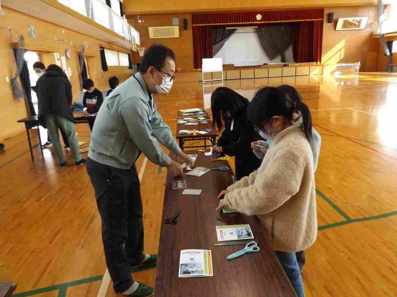 ◆各コーナーでは、お仕事の様子を説明していただいたり、道具を見せていただいたり、さらには実際にものづくりや作業を体験させていただきました。心を込めて接してくださる事業所の方とのふれあいの中で、子どもたちの瞳がほんとうにきらきらと輝いていました。学校が「人・社会とつながる場」であることを実感するひとときでした。