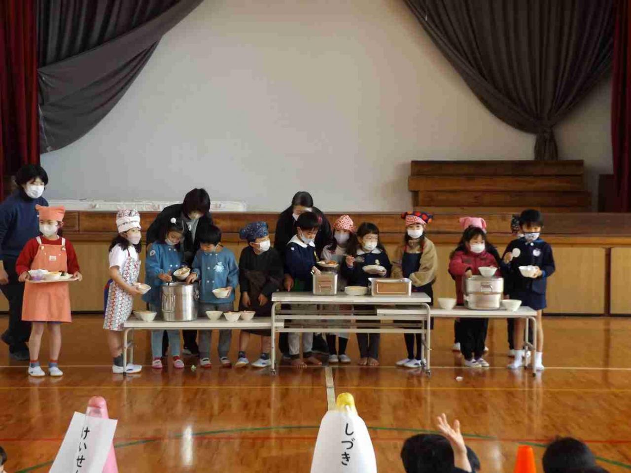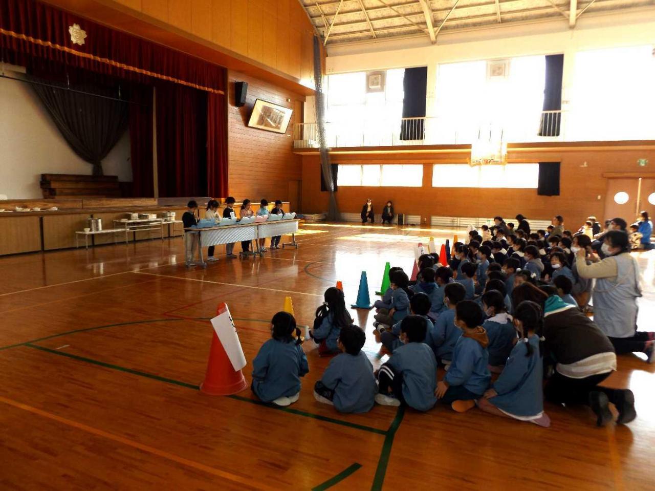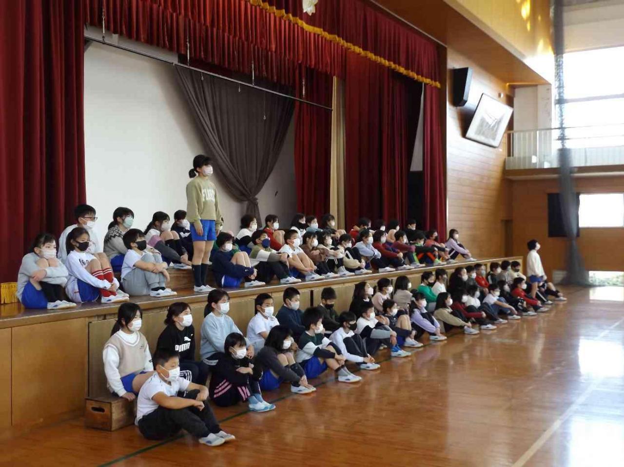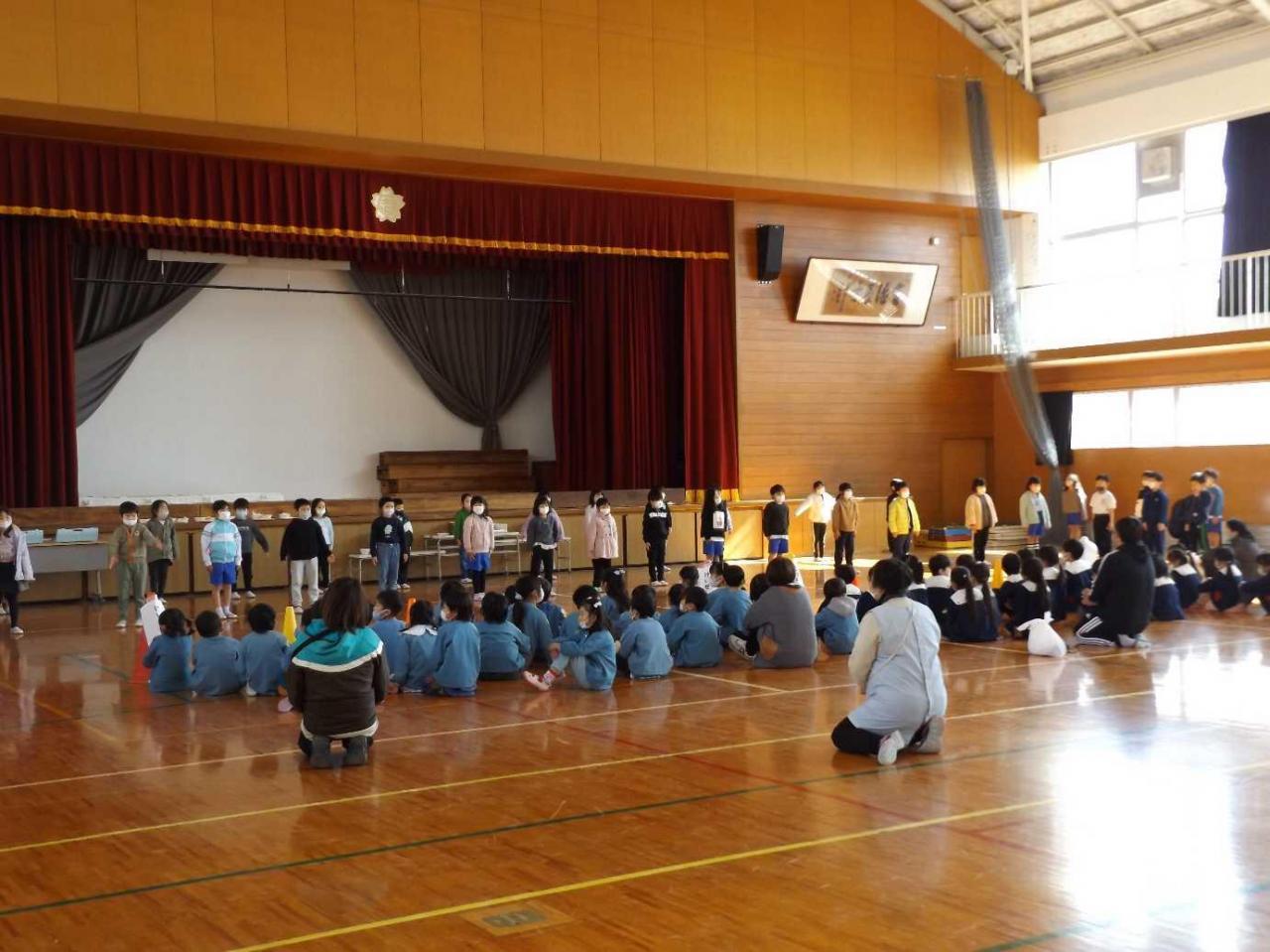 ◆同日の午前には、たくさんの新入予定児を体育館に迎えて体験入学を実施しました。1年生が様々な学習の成果を披露したあと学校生活の様子を紹介。園児のみなさんは、1年生のはつらつとした発表に釘付けでした。