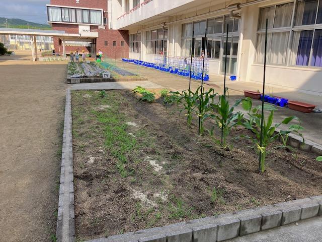 六月も半ば。気温が高くなるとともに、鉢のアサガオ(1年生)・ミニトマト(2年生)や学級園の様々な作物がぐんぐんと育っています。1学期の授業日は残り25日ほどになりました。