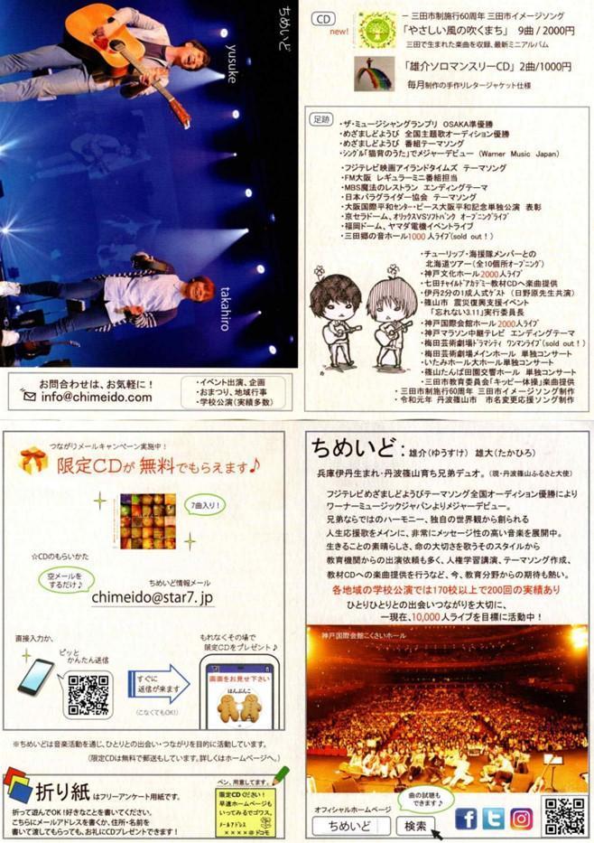 ◆教育講演会は“ちめいど”さんによる「今を生きる私たちひとりひとりが名主役」。心に響く歌を交えながら、次のようなメッセージをいただきました。