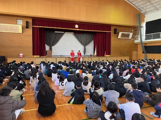 ◆12月22日、体育館。第2学期終業式。志筑小学校の2023年を振り返る1分間のムービーを観たあと、校長より次のような話をしました。