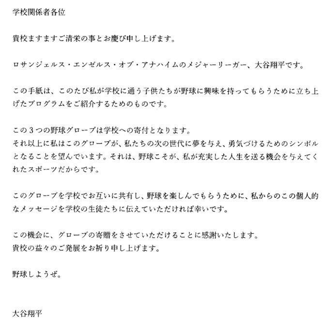 ◆グローブには、大谷選手からの次のようなメッセージが添えられていました。