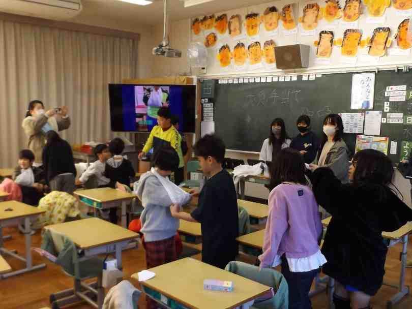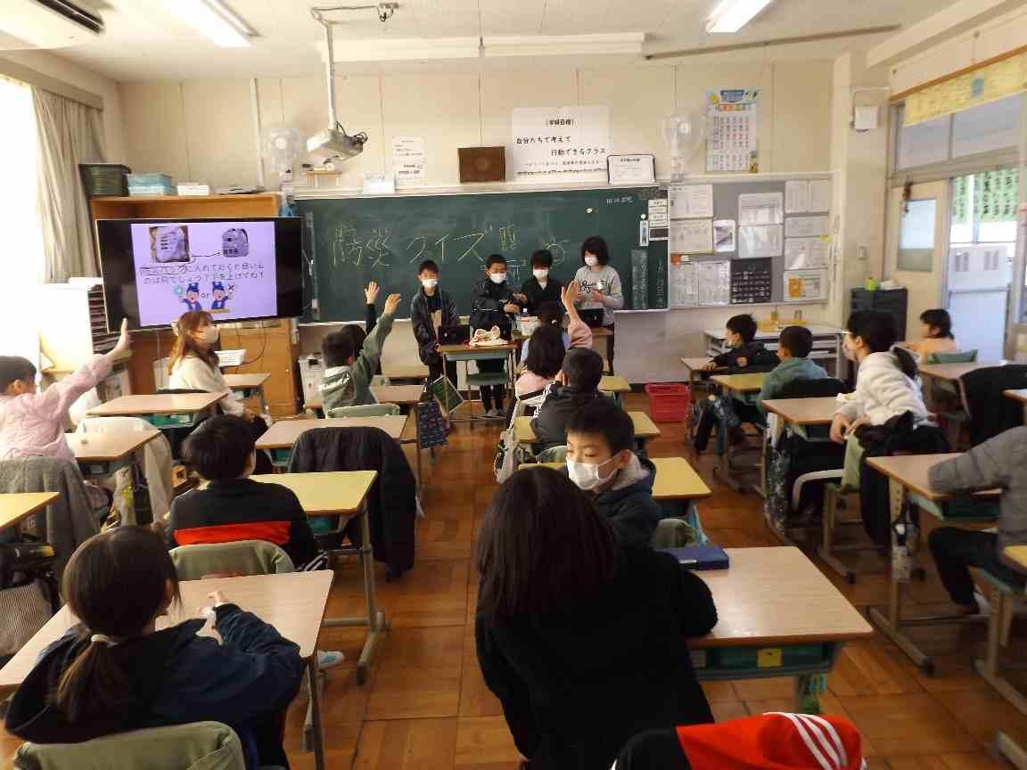 ◆防災ラリーでは、5年生が運営するコーナーをなかよし班で巡り、ワークショップを行いました。各コーナーでは防災グッズ作りや応急手当、防災かるた、防災クイズの体験を通して地震・防災について学びました。「きょうの体験を生かし、大きな災害のときにも一人一人が命を守ることを願っています。」(閉会のことば 5年生)