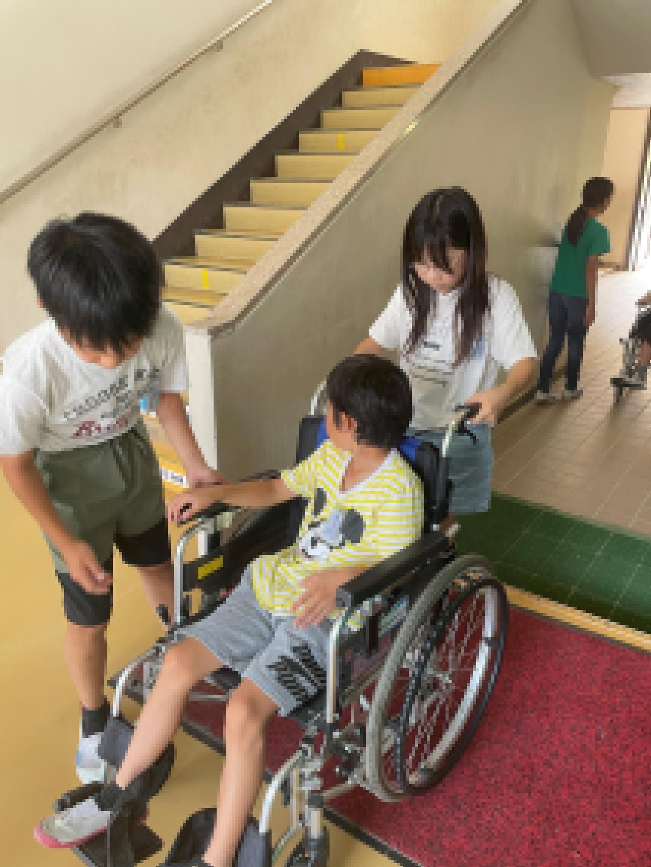 ● 4年生は学校の中を車いすで移動する体験をしました。はじめて車いすに乗ったり押したりする人もいました。様々な立場を経験することで暮らしやすい生活について考えるきっかけとなったのではないでしょうか。
