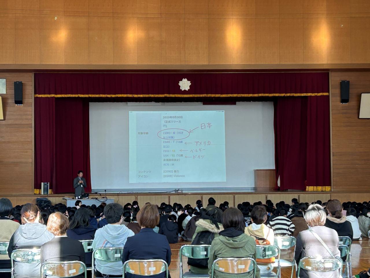 ●同日、教育講演会では「オンラインゲームやラインで傷つかない、また友達を傷つけないための使い方」と題してご講演いただきました。社会委員会の皆様には大変お世話になりありがとうございました。