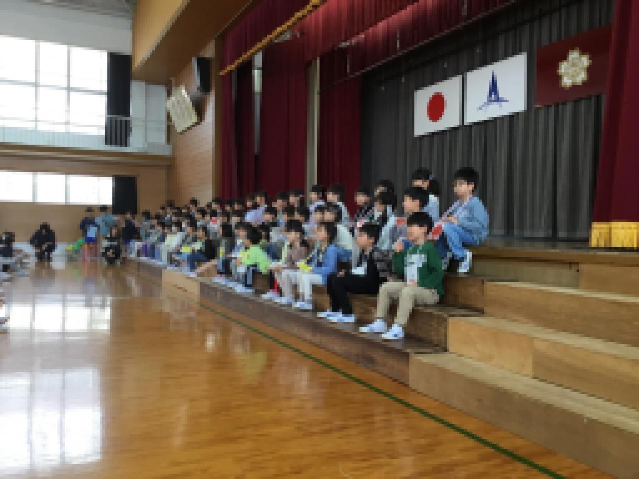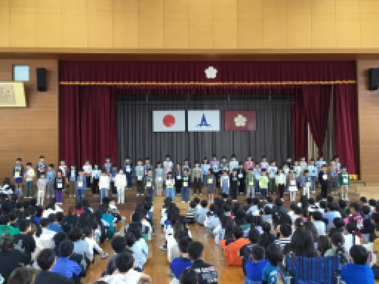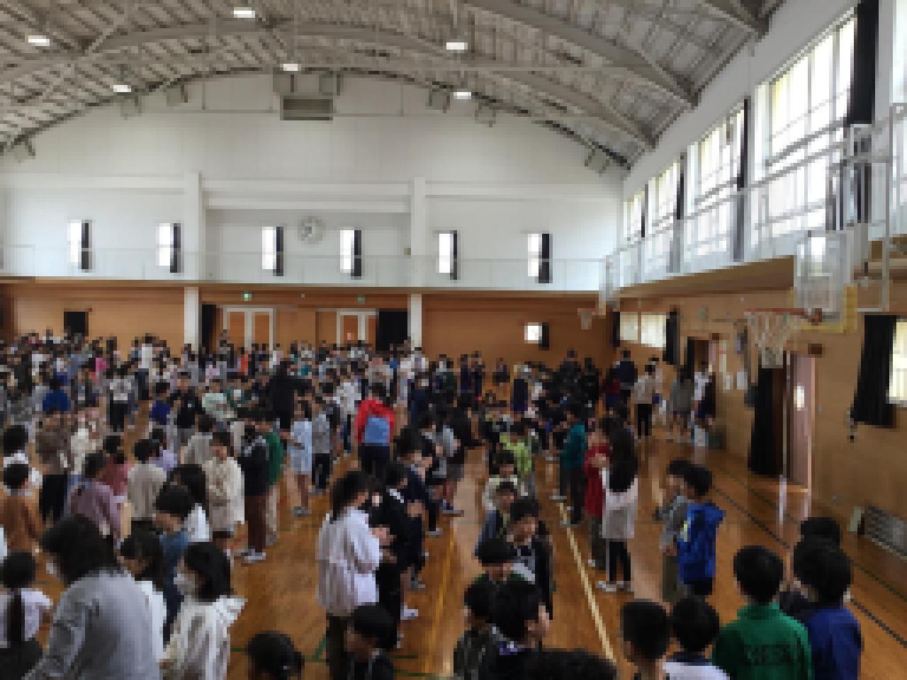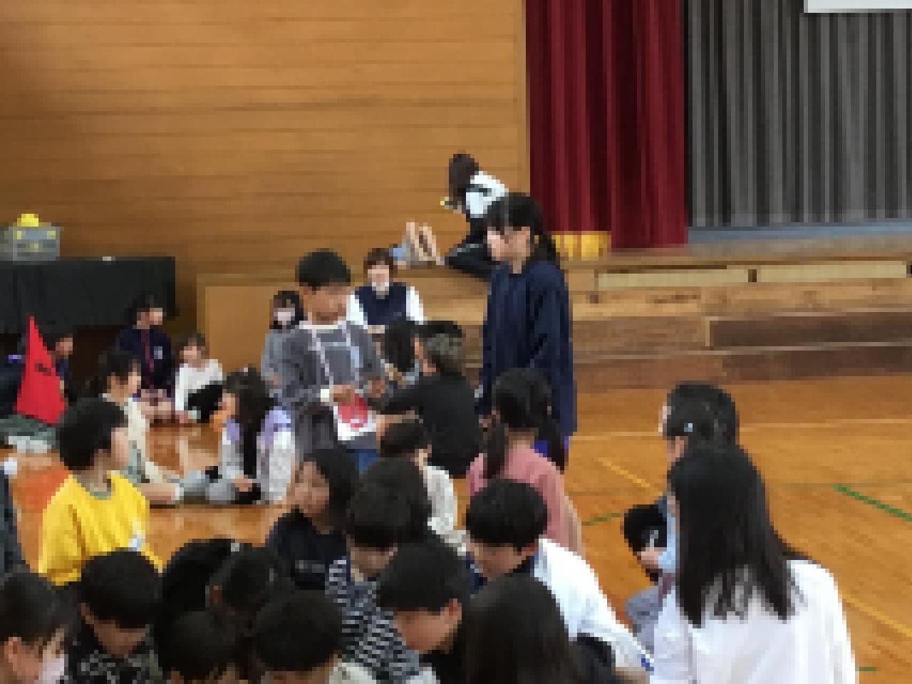 ●先週、1年生を迎える会が体育館で行われました。6年生が、しっかりと準備をしてくれました。児童会は、全校生に上手に指示を出し、全校生もそれに応えるようにてきぱきと動き、とてもスムーズで楽しい会となりました。1年生も入学式の時とは違い、リラックスした中でお兄さんやお姉さんと一緒に楽しむことができました。