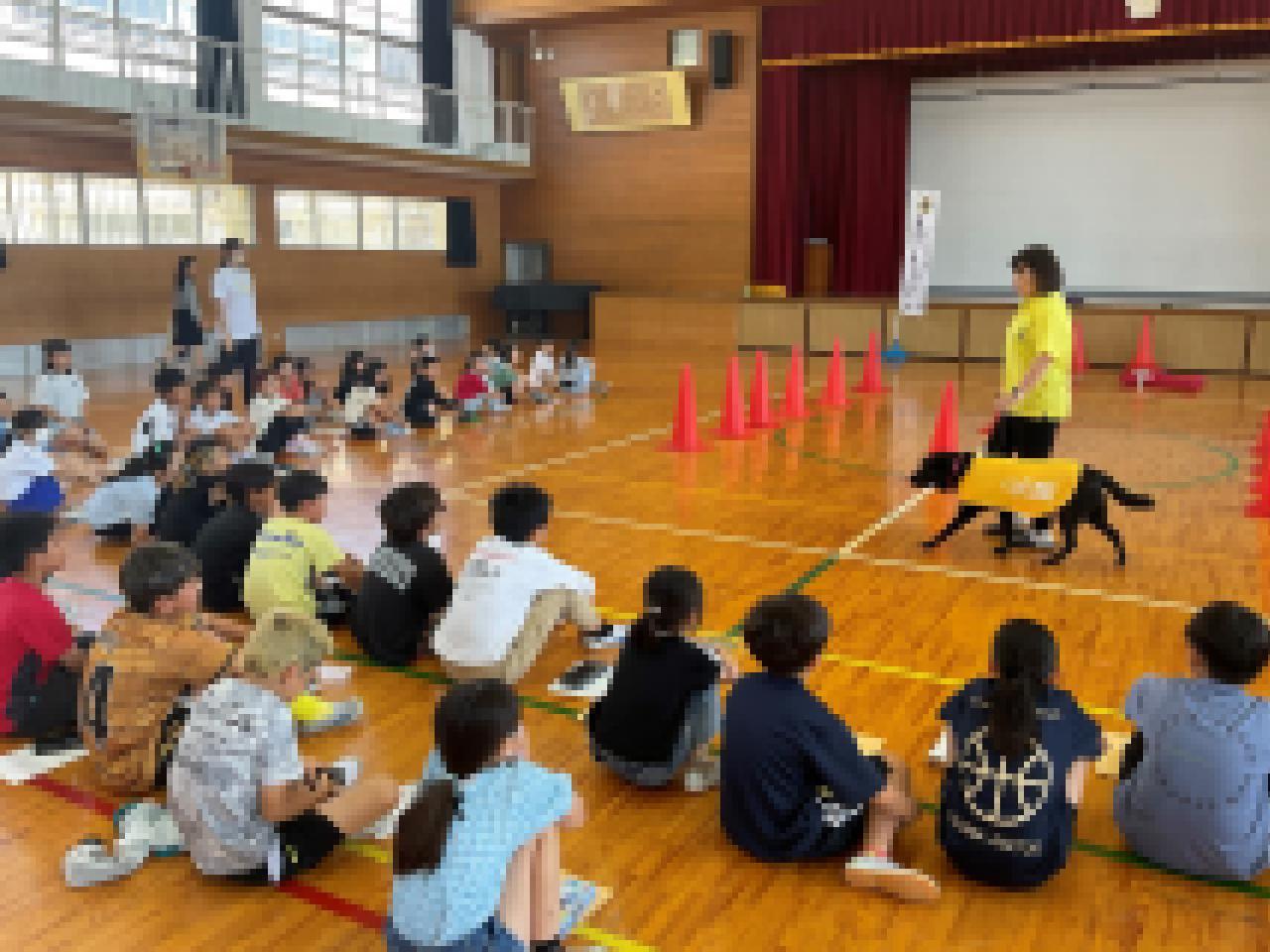 ●6月4日(水)、4年生の福祉体験学習を行いました。今回は、津名ライオンズクラブのご協力により、「盲導犬」について学ぶ機会をいただきました。