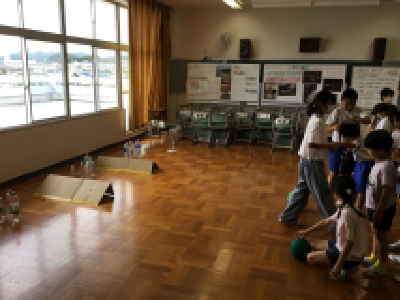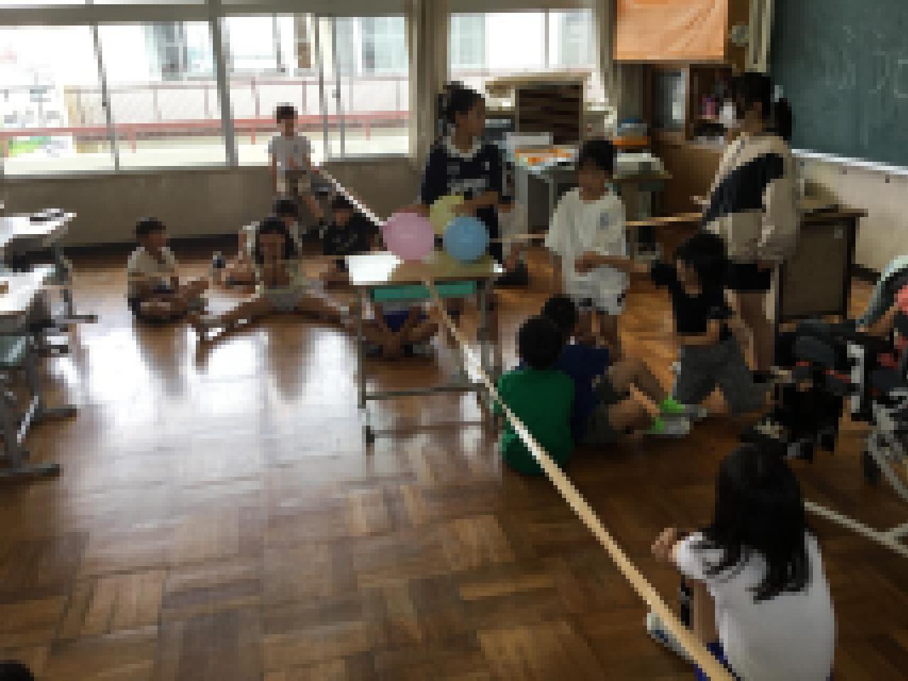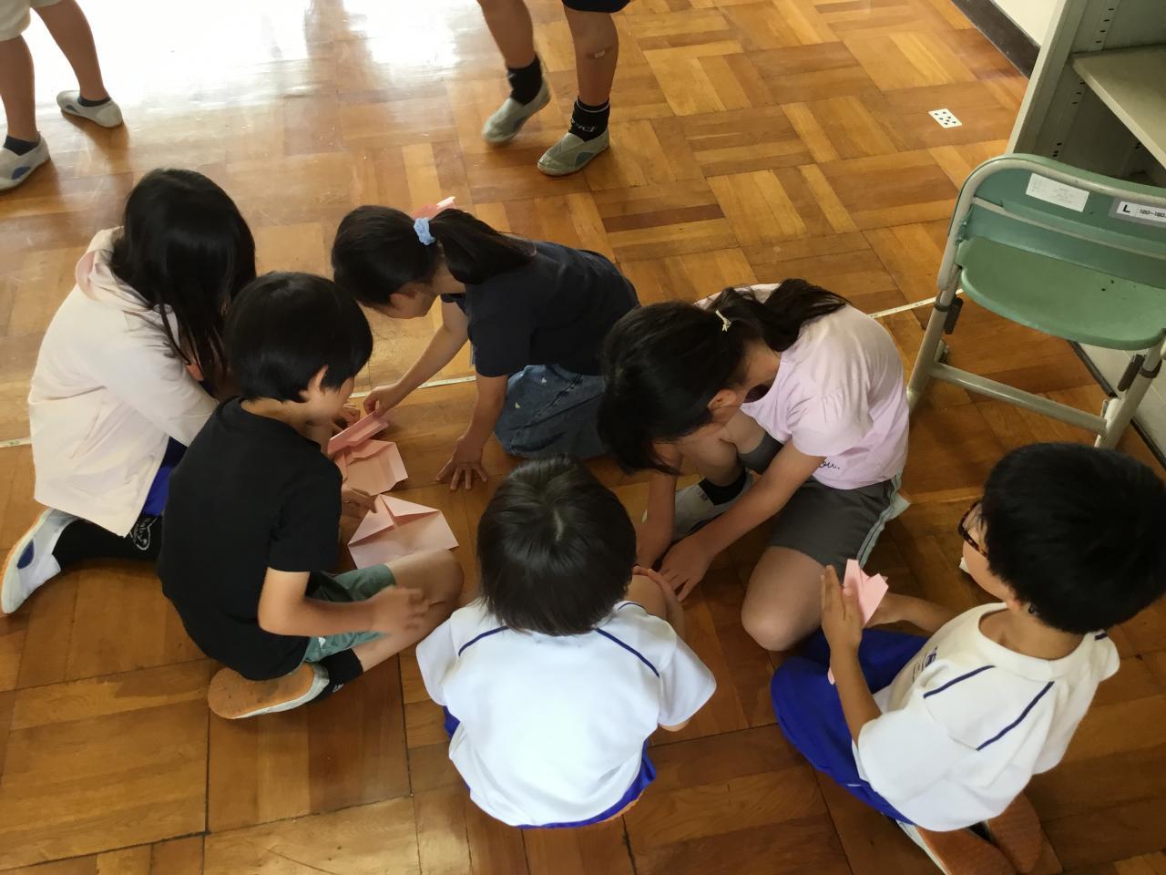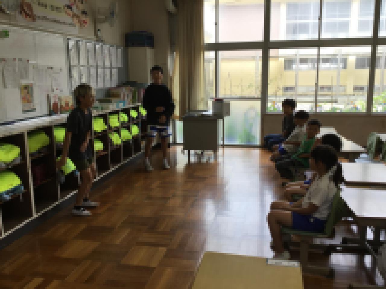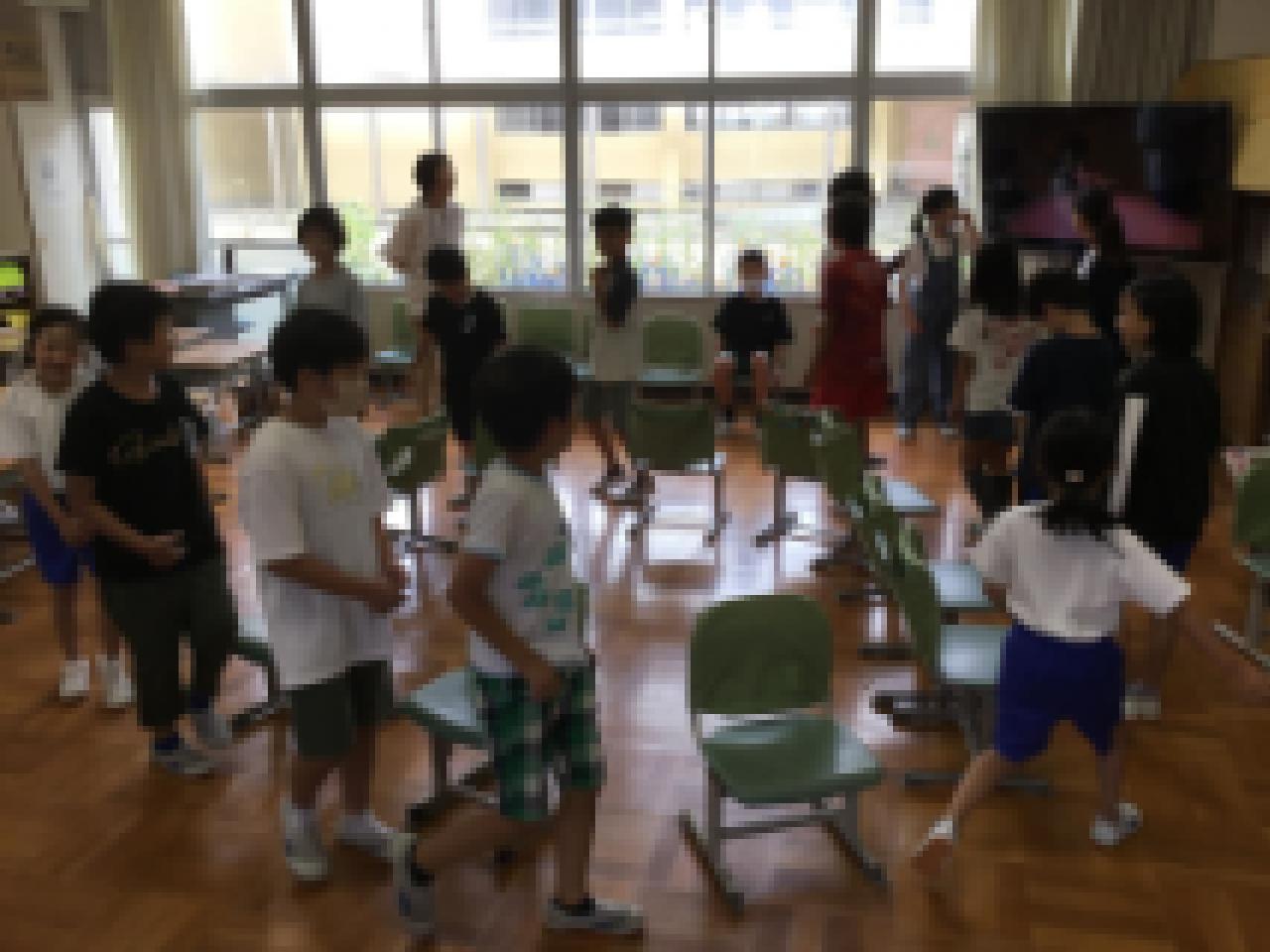 ●先週は夏らしい晴れの日が続いたかと思うと、今週は雨。運動場で遊ぶことができないけれど、6年生が計画してくれた「雨の日プロジェクト」で全校生が楽しみました。縦割り班グループごとに6年生が考えてくれたゲームに参加。ジェスチャーゲームやいすとりゲーム、見ているだけで笑えます。6年生、ありがとう。
