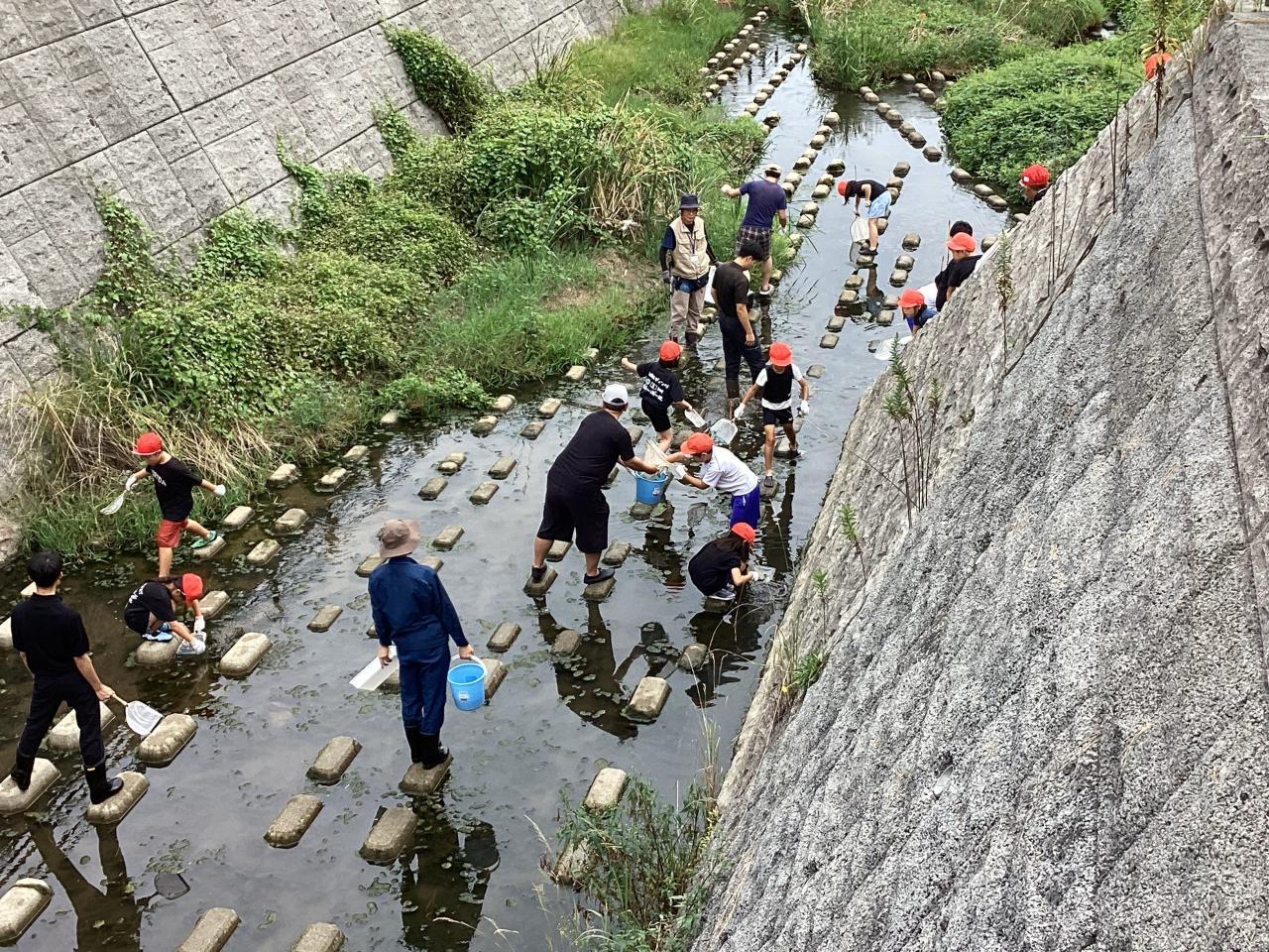 ●9月25日、3年生は「宝珠川」に生息する生き物をさがしに行ってきました。第3学年では、環境体験学習といって、地域の自然について体験的に学ぶ学習をしています。志筑小学校では、地域の宝珠川にどんな生き物がいるのか、その生き物が住む環境(水質)は、どのくらい良いのか。捕獲した生き物から水質を割り出し、環境保全の学習を進めています。