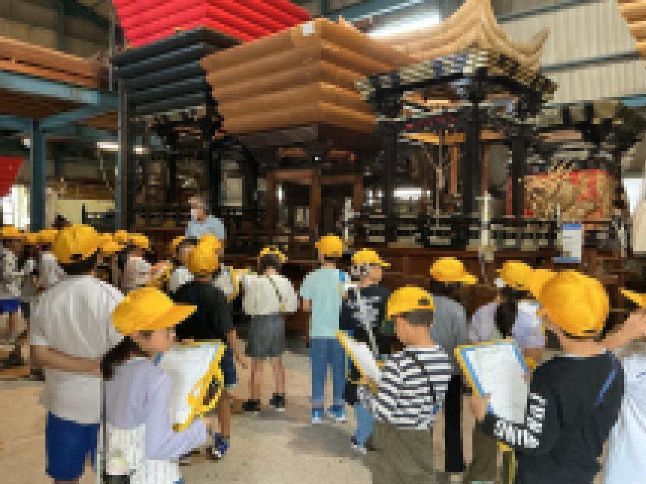 ●同日、2年生は志筑のまちに探検に行きました。だんじりや美容院、レストランを見学させていただいたり、地域のお店の仕事を見せていただいたりしました。