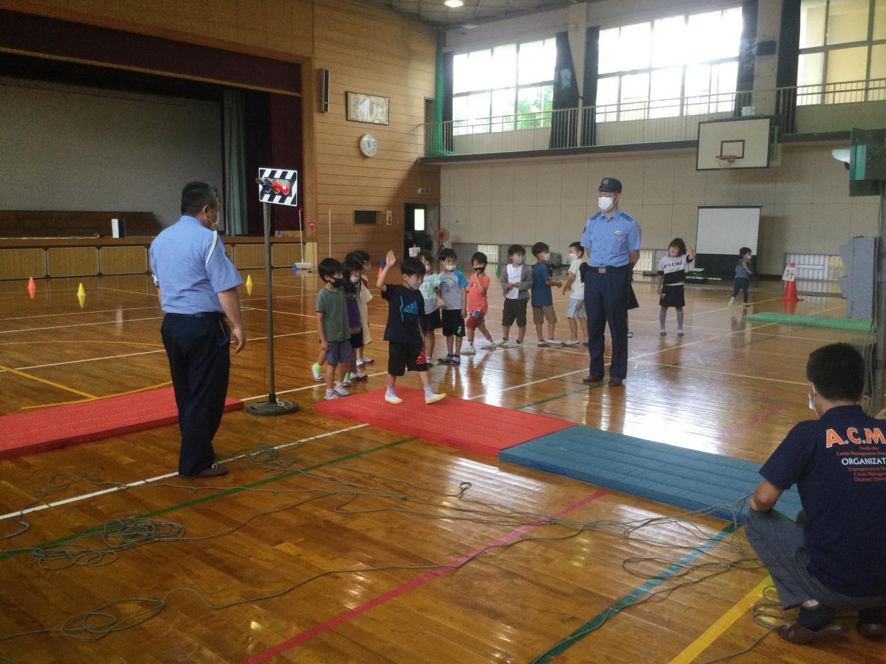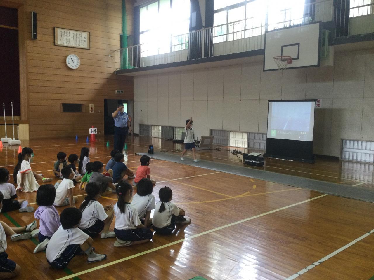 7月5日(火)、交通事故を未然に防ぎ、子どもたちの大切な命を守るための交通安全教室を実施しました。ご多用の中、淡路警察署、中田駐在所、淡路市役所危機管理課の方々にご指導いただきました。雨天のため、体育館で実施しました。初めに基本的な交通ルールについて説明していただき、その後、1•2年生は歩き方や横断歩道の渡り方を、3〜6年生は自転車の乗り方を学びました。今回の交通安全教室を通して、子どもたちには交通ルールやマナーの確認以外に、自転車に乗っているときや歩いている道に潜んでいる危険についても考えてもらいたいです。