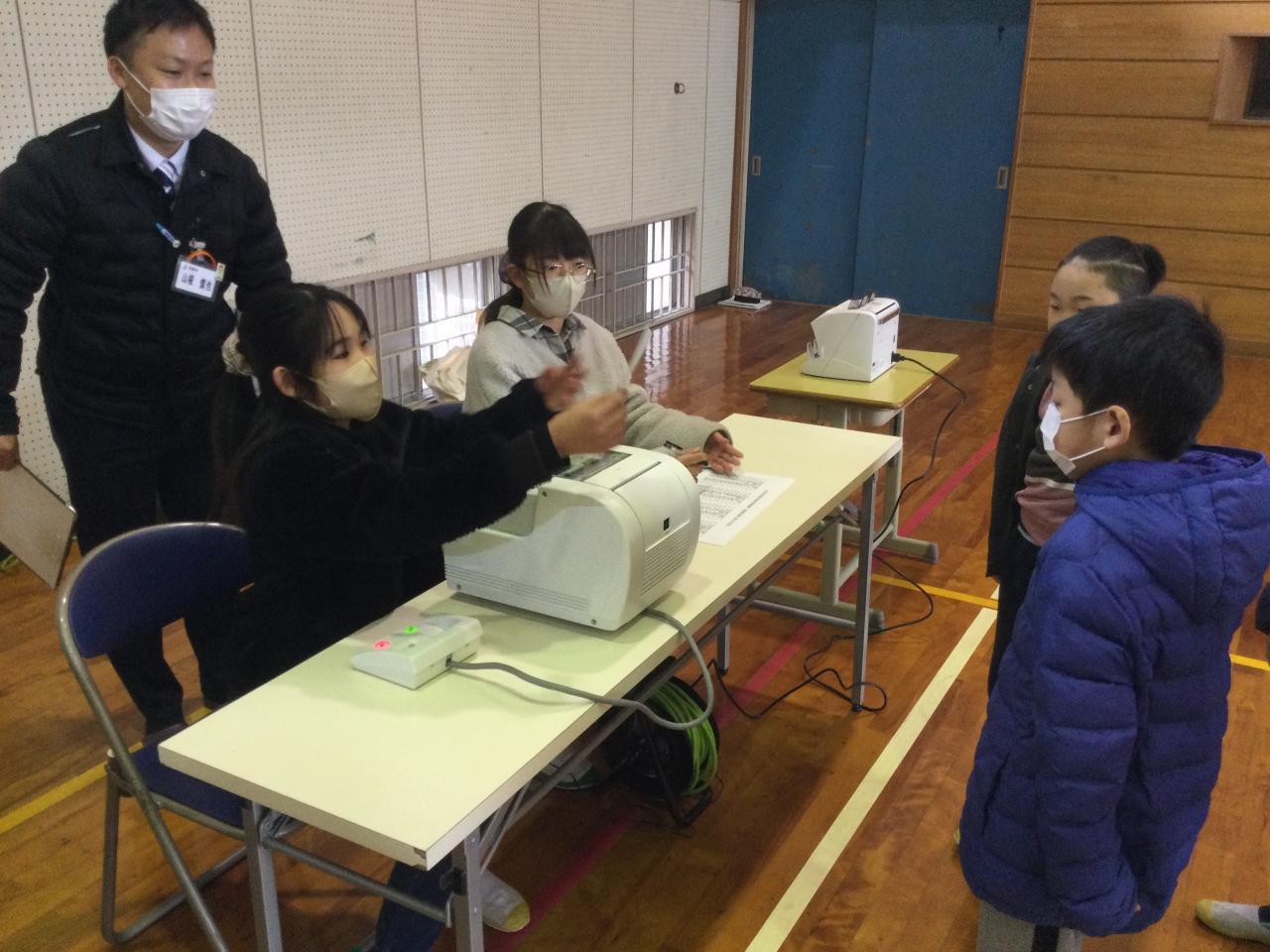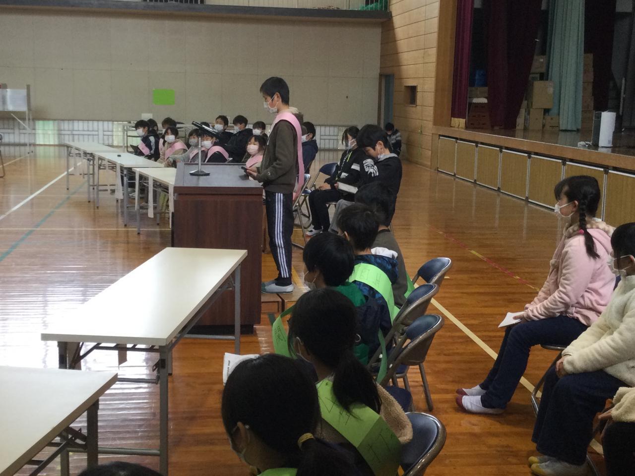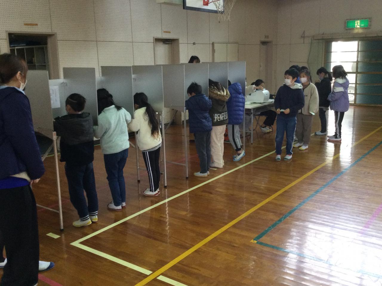 2月15日(水)、新年度の児童会役員立会演説会及び役員選挙を実施しました。新6年生から8名、新5年生から6名立候補してくれました。初めに立会演説会がありました。応援者からは立候補者の性格や長所、得意なことなど、児童会役員にふさわしいといえる根拠が述べられました。立候補者からは中田小学校が今よりももっと良い学校になるよう意気込みと抱負が語られました。また、演説を聞いていた各学年の子どもたちも、仲間が頑張っている姿を真剣な表情で見つめ聞いていました。次に、役員選挙がありました。今回は淡路市選挙管理委員会のご厚意で、実際の選挙で使用している自動交付機、筆記台、投票箱等をお借りして投票を行いました。この経験をとおして、子どもたちが政治や社会のことに関心をもち、それを自分ごととして考えるきっかけになれば嬉しく思います。