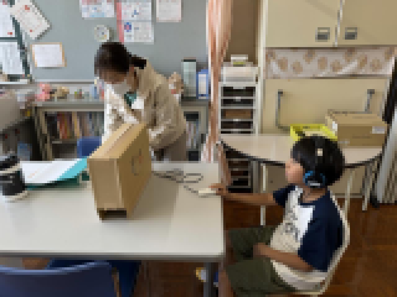 今日は、聴力検査がありました。みんな、モニターを見て、検査の手順を確認していました。