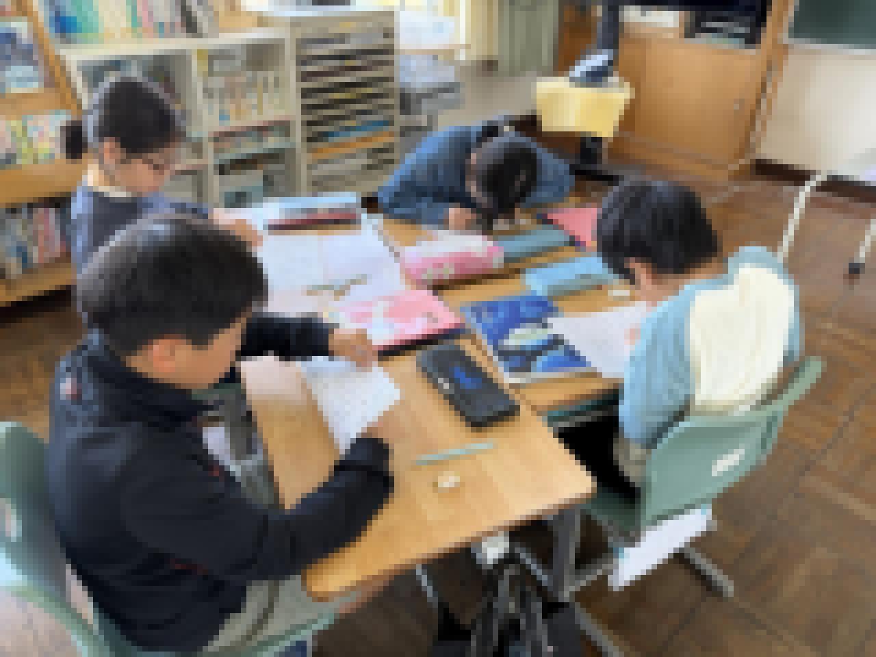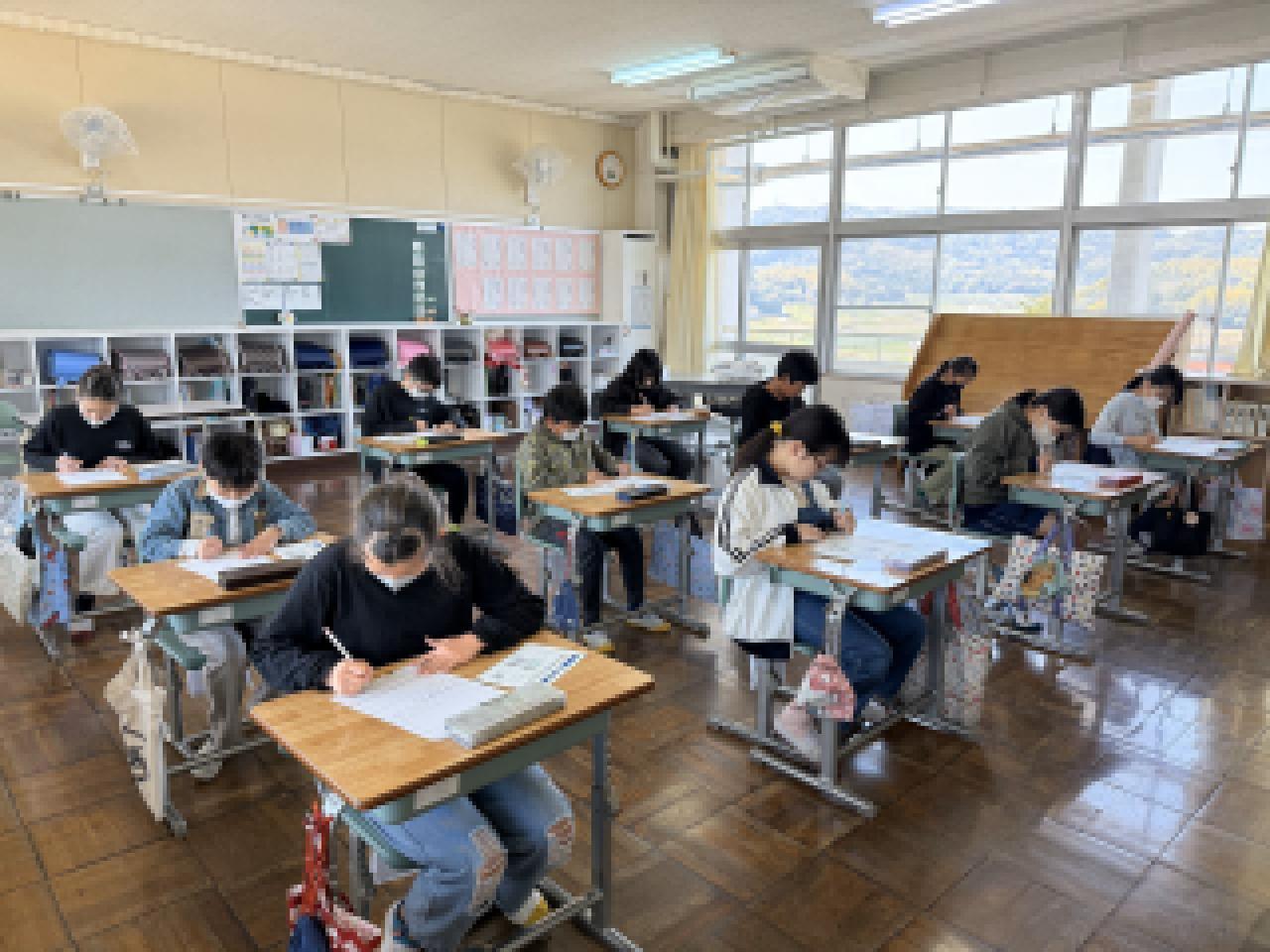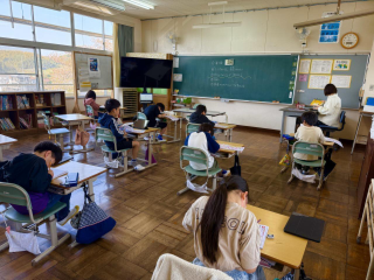 6年生は、全国学力・学習状況調査を受けました。教科は国語、算数、理科の3教科。国語の何文字以内に要約する問題が難しかったようです。1年生は、国語「なんていおうかな」の勉強で、場面に応じた話し方を考えていました。2年生は、生活でロイロノートを使って、学校探検の準備をしていました。3年生は、国語で新出漢字をドリルに書いていました。4年生は外国語で、世界の知っている国名を発表していました。5年生は、国語で漢字の復習プリントをしていました。野村学級、有馬学級合同で、朝の会をしていました。楽しそうに、スピーチとそれを聞いて質問をしていました。