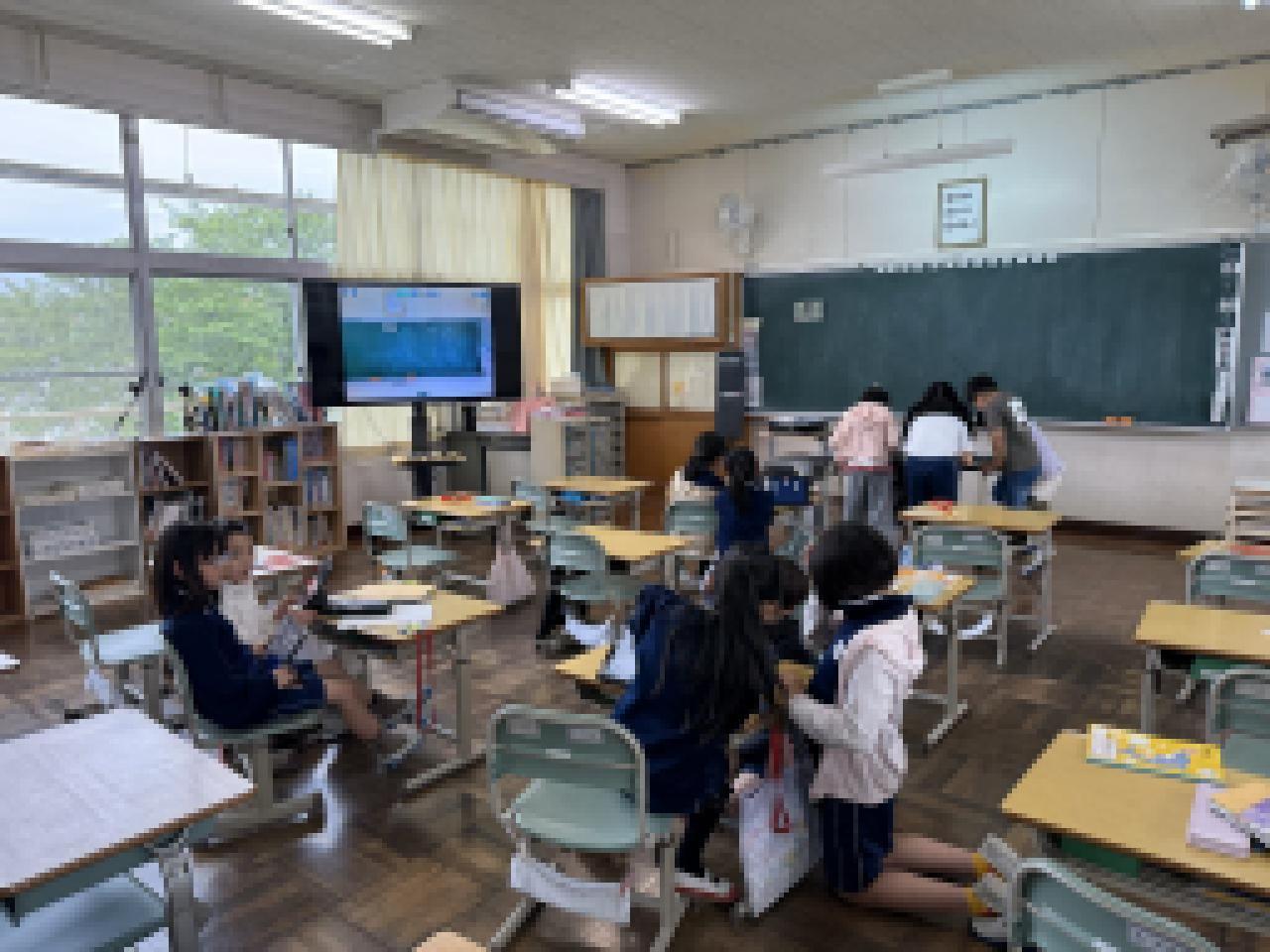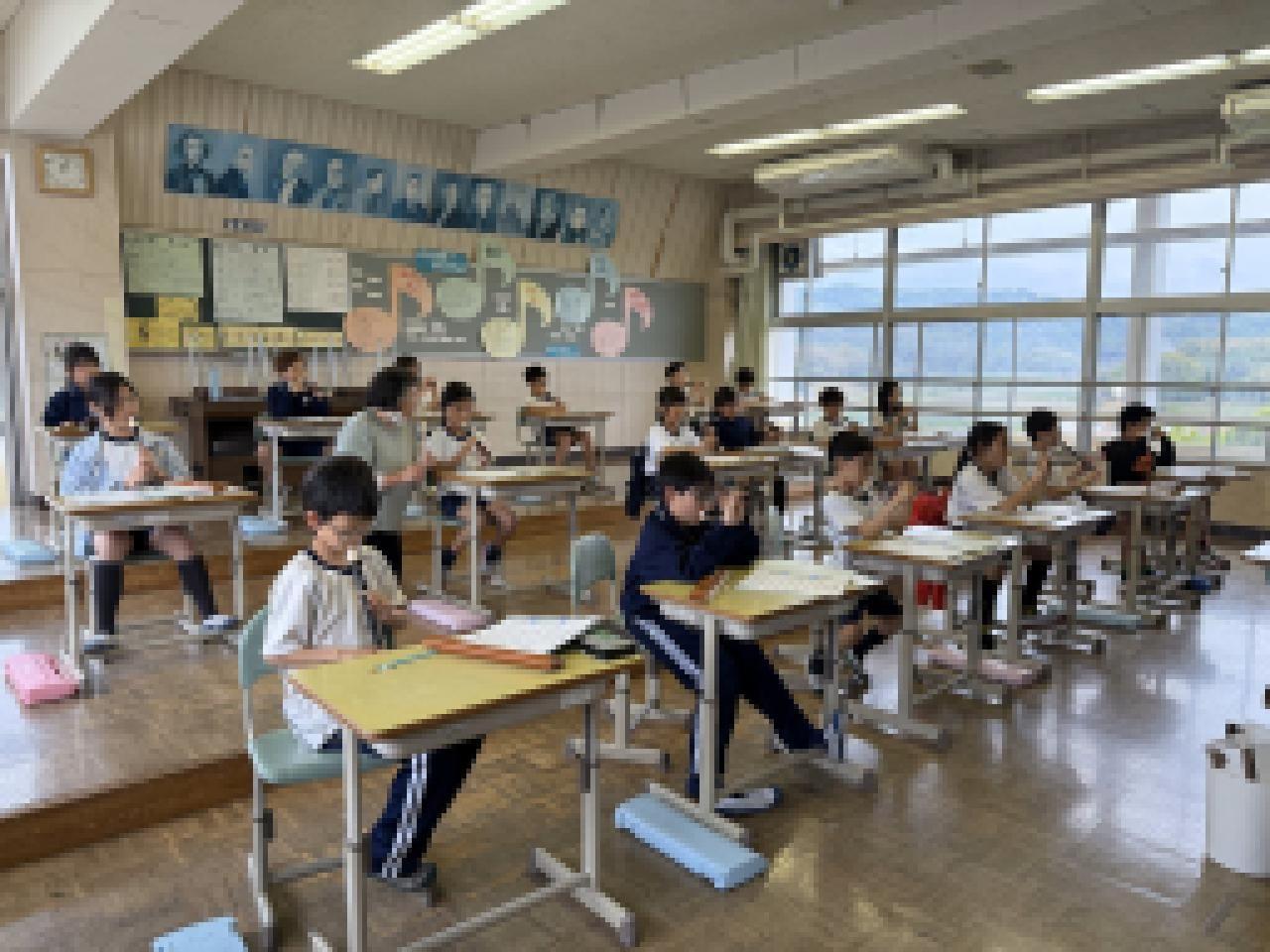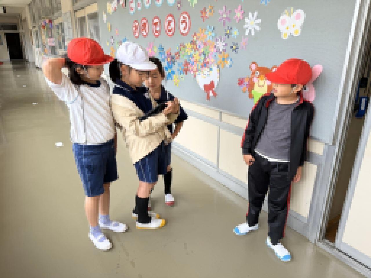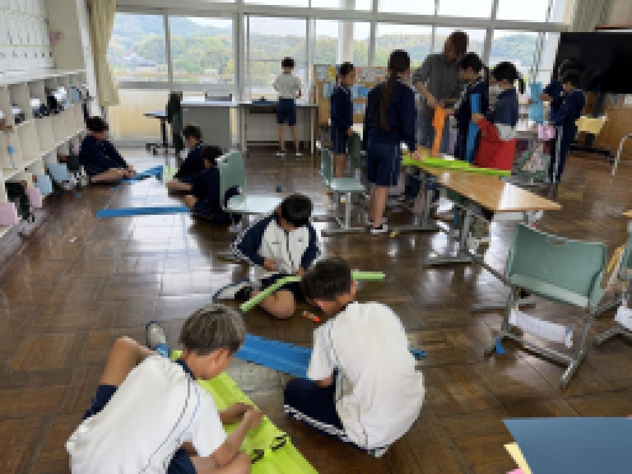 今日は生活の時間に、1,2年生が学校探検。2年生が朝からグループごとに最終打ち合わせをしていました。本番では、2年生数名が1年生一人に、クイズを交えながら、くわしくそれぞれの教室の説明をしていました。3年生は社会の時間に、方位(東西南北)の勉強をしました。4年生は音楽の時間に、♭のある曲をリコーダーで練習しました。5年生も6年生も、図工の時間に、紙の凹凸が醍醐味のこいのぼりを作りました。好きな色の画用紙を選び、魚のウロコをハサミで切った後、折り曲げて凹凸を表現していました。