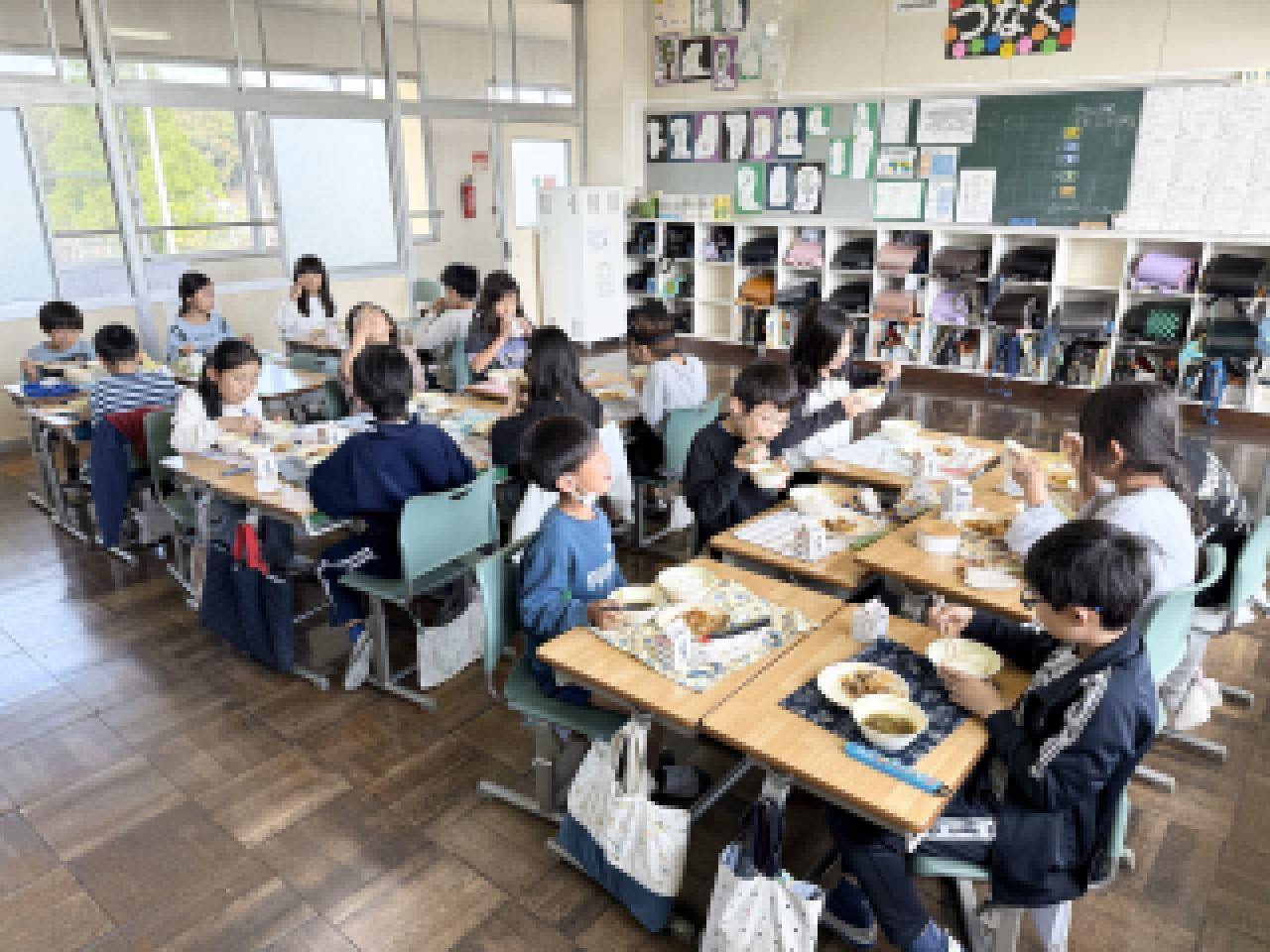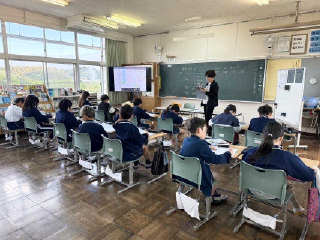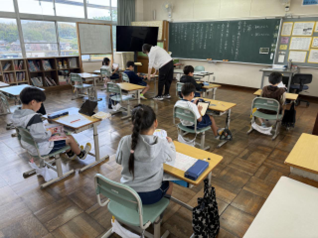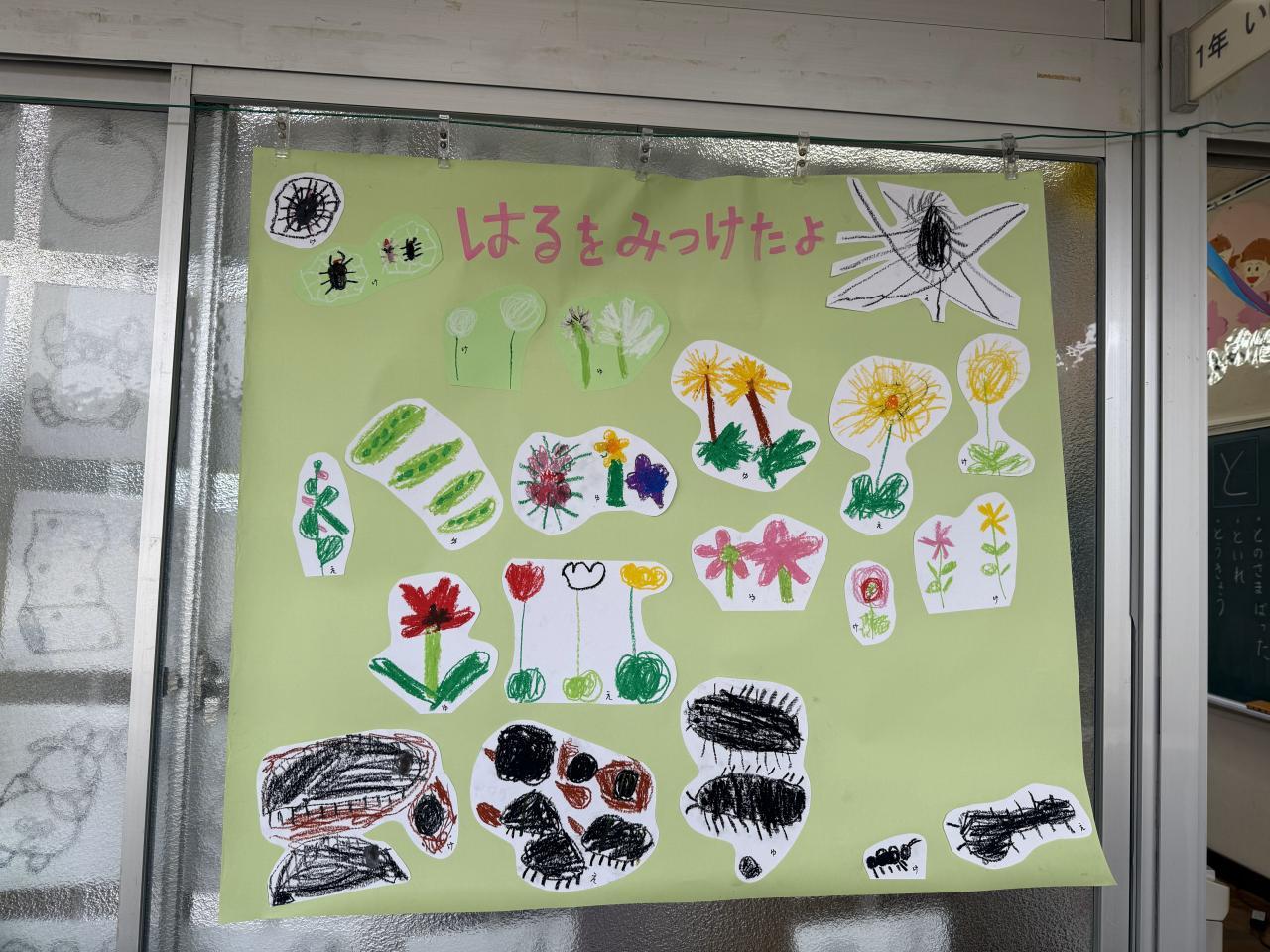 1,2年生合同の図書の時間、先生に読み聞かせをしてもらい、楽しそうに聞いていました。3年生の国語の時間、漢字テスト返しがあり、間違った漢字のお直し、100点チャレンジテスト、タブレットドリル「漢字忍者」に取り組んでいました。4年生は給食の時間、みんなもりもり食べていました。この日の献立は「焼肉風、ワカメスープ」、食も進んだことでしょう。5年生は理科の時間、発芽の条件を考えていました。「空気・水・適当な温度」のほかに、「愛情」と答える児童がいました。また、5年生の教室には、前日に算数の授業で使った1㎥の模型が置いてありました。実際に見る体積の大きさに、驚いたことでしょう。5,6年生合同体育は、白熱したドッジボールをしていました。1年生の教室前に、「春見つけ」で自分が見つけたものを絵にかいて貼りだしていました。春真っ盛り。初夏も近づいてきています。