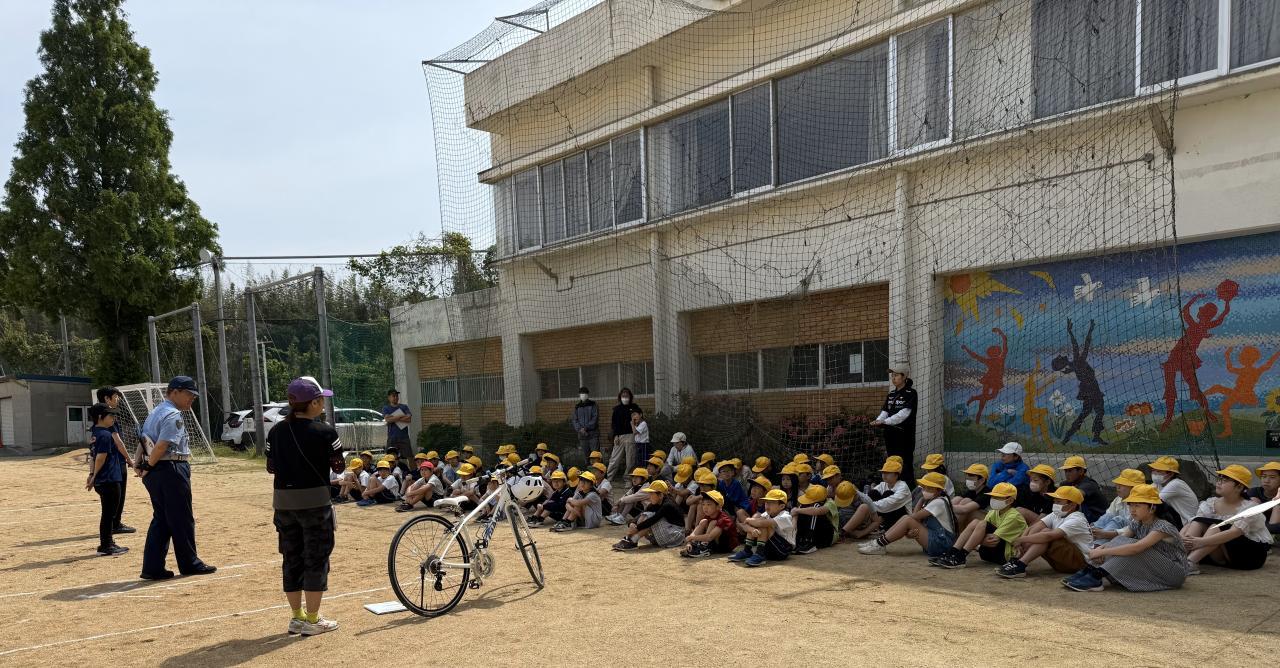 2,3時間目に、交通安全教室が開催されました。淡路警察署と市役所危機管理課から交通指導員の方々をお招きし、全校児童を対象に、交通ルールや安全な歩き方、自転車の乗り方について、分かりやすく、丁寧な指導をしていただきました。