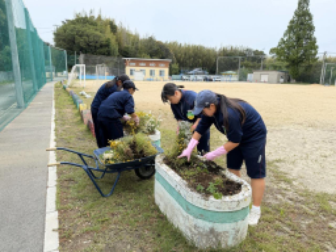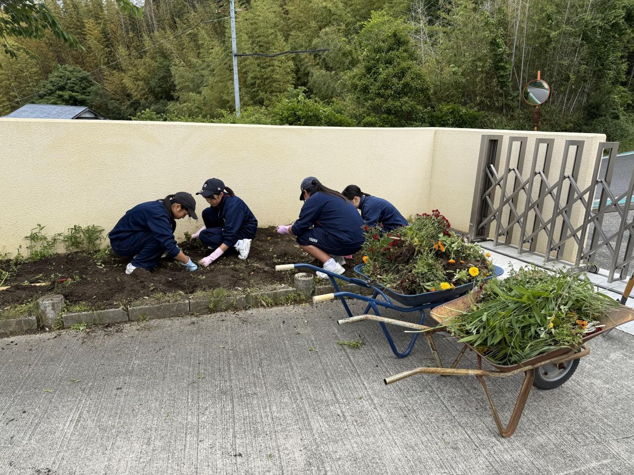 初日から環境整備や、1,2年生の授業補助、給食準備等、精力的に働いてくれています。生徒たちは、初めは緊張した面持ちでしたが、次第に肩の力も抜けてきていました。黙々と働く姿に、仕事の大変さややりがいを肌で感じた様子でした。