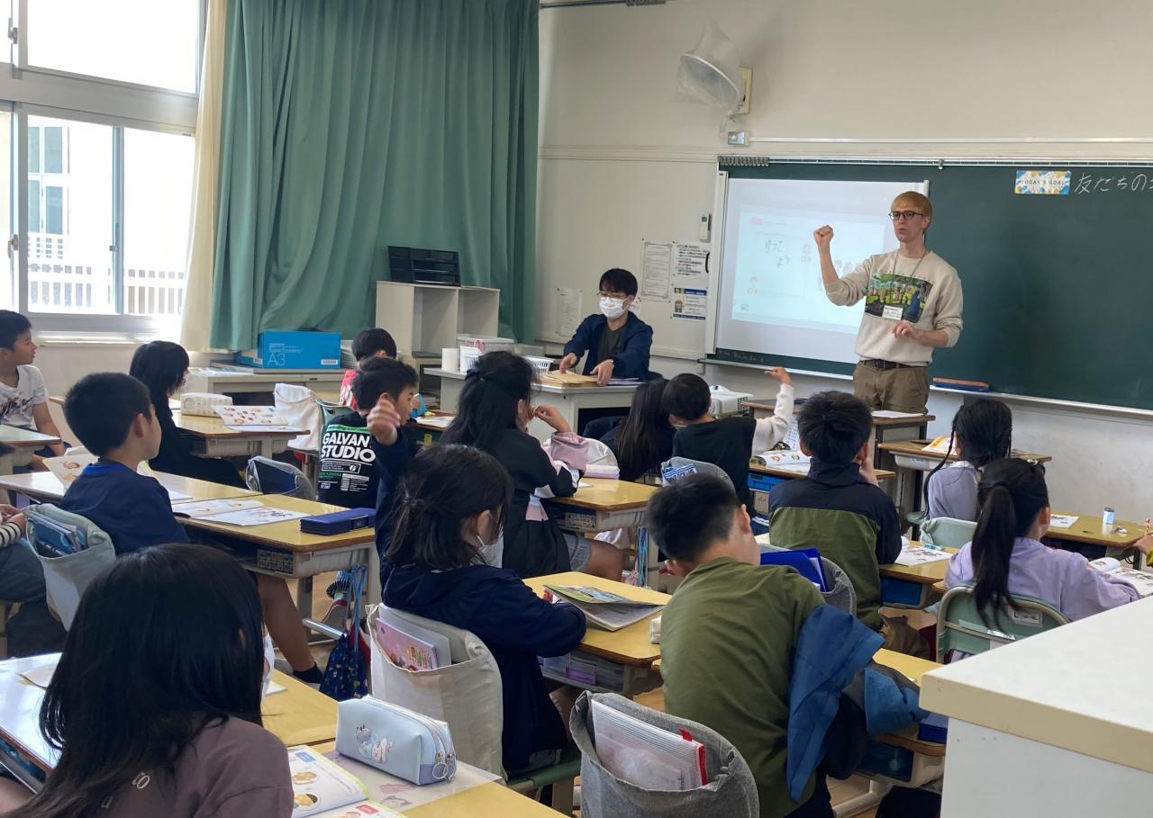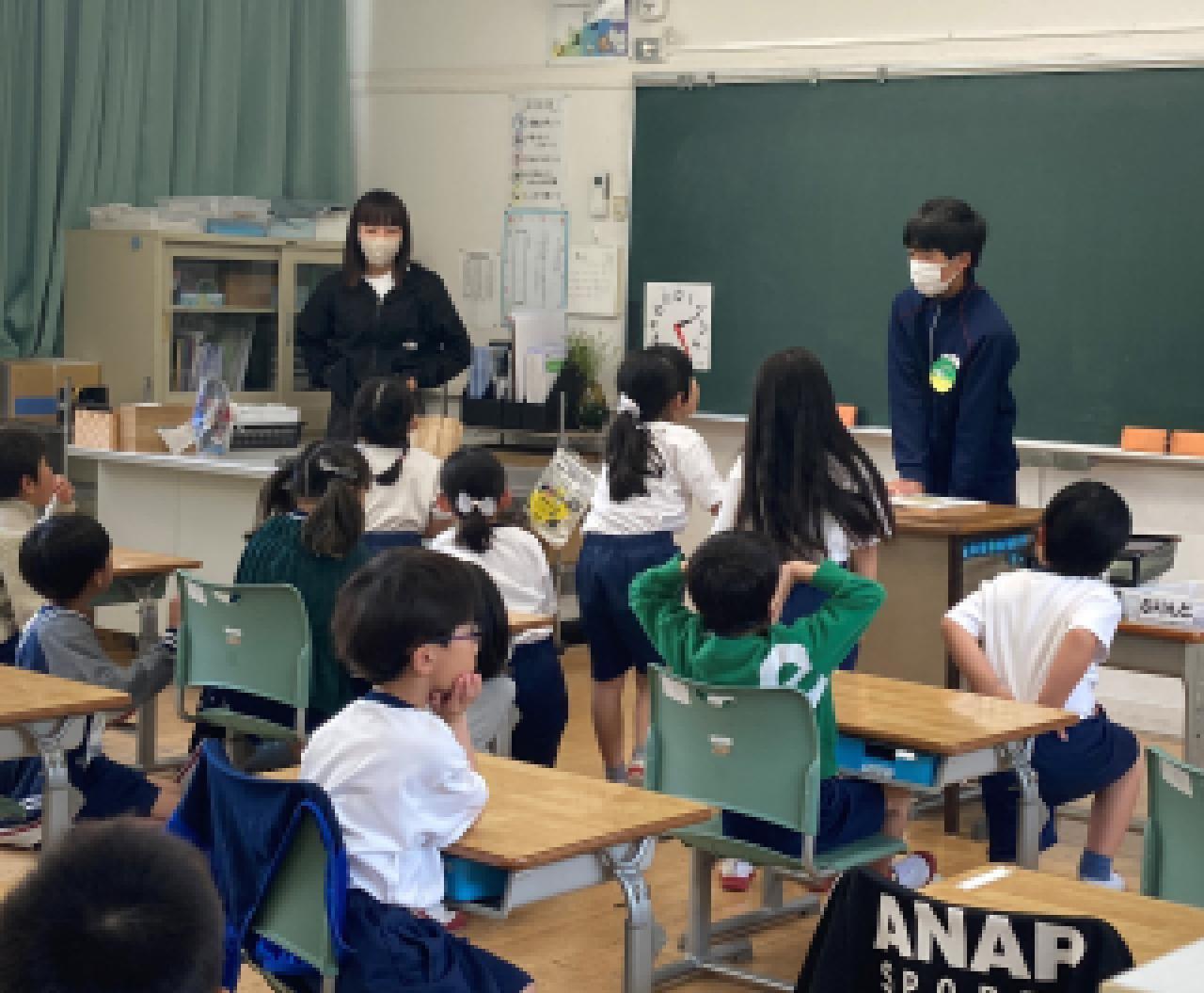 津名東小学校の子どもたちは、おもしろくて明るい子がいっぱいだなと思いました。理由は、一緒に話している時にすごく笑顔でおもしろいことを言って笑かせてくれたからです。また、休み時間の時などに私たちを見つけると、笑顔で走ってきてくれたりしてくれたからです。
